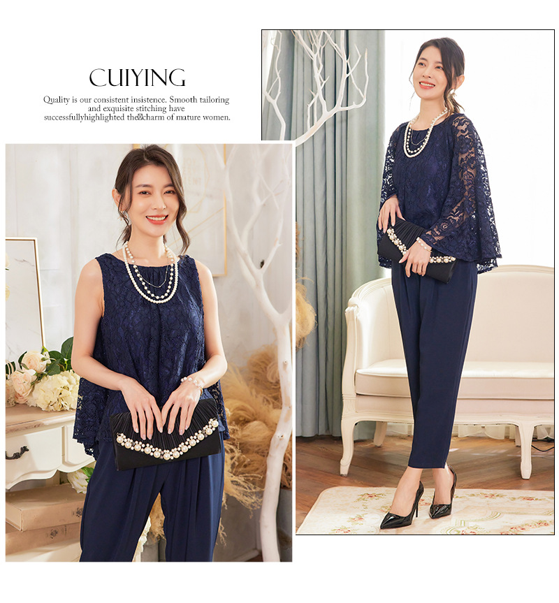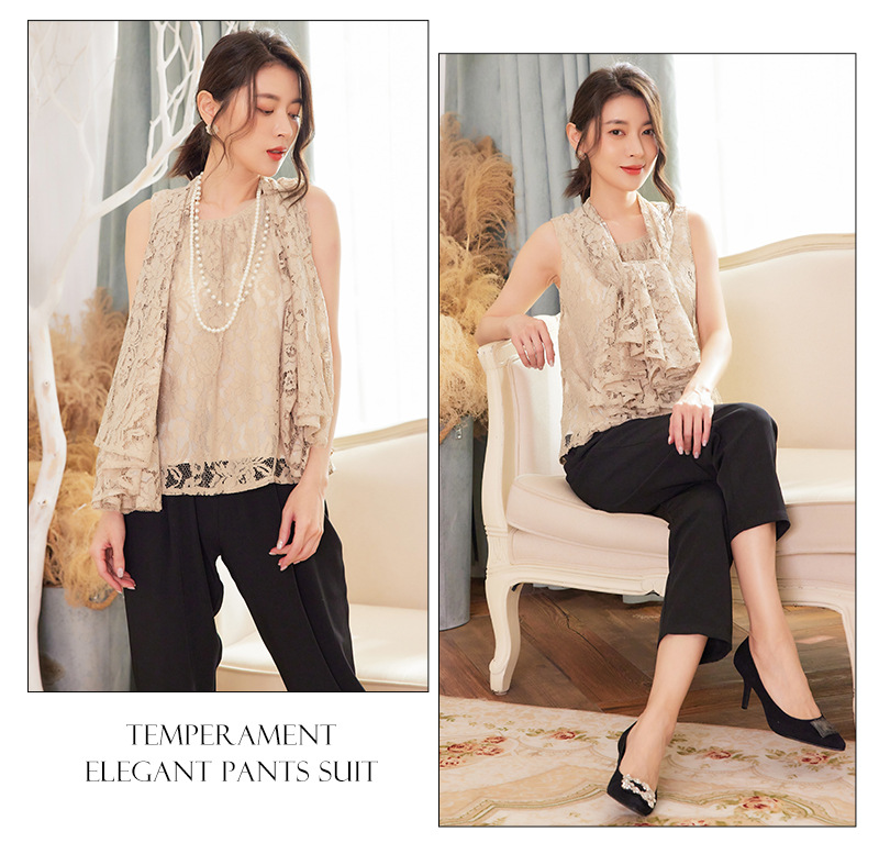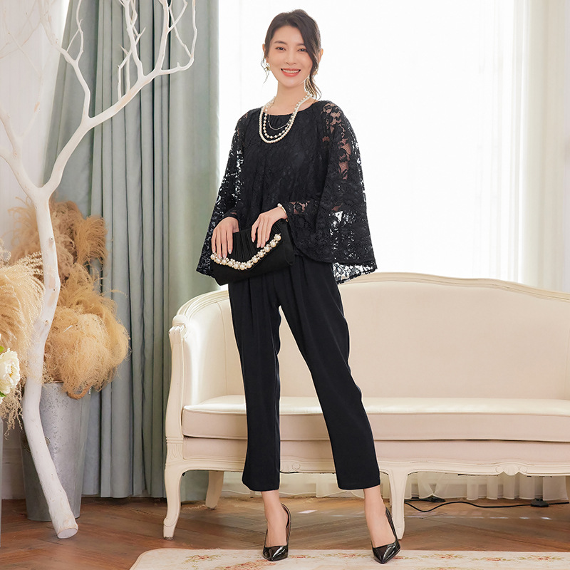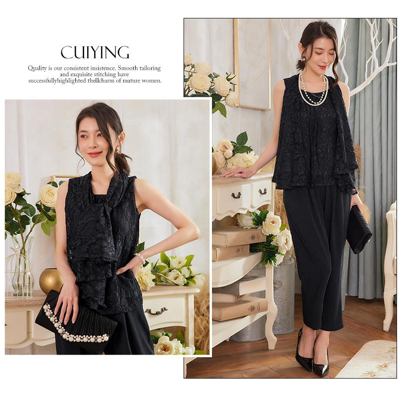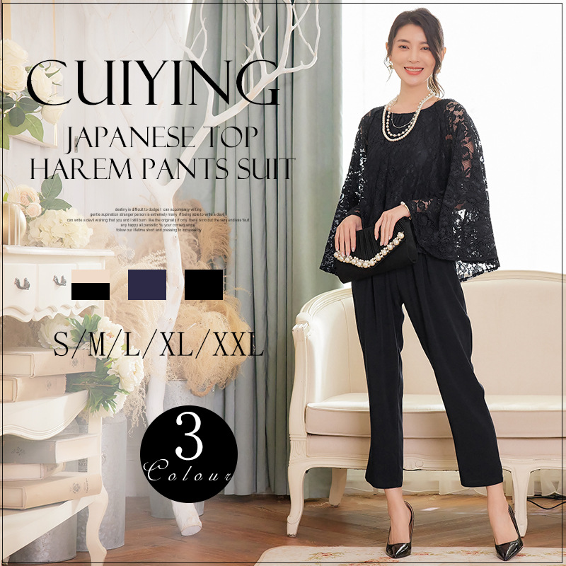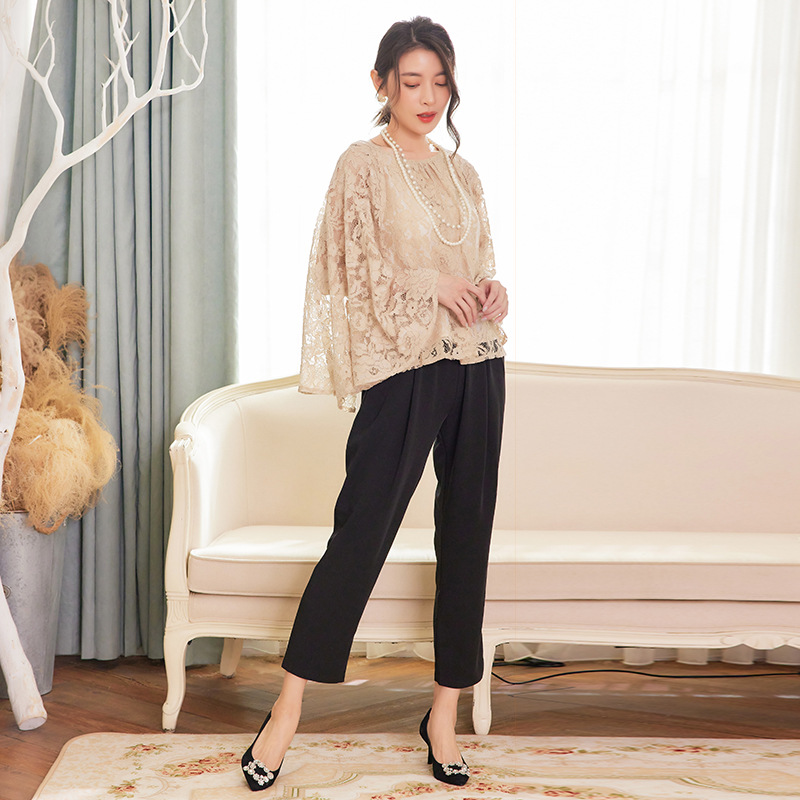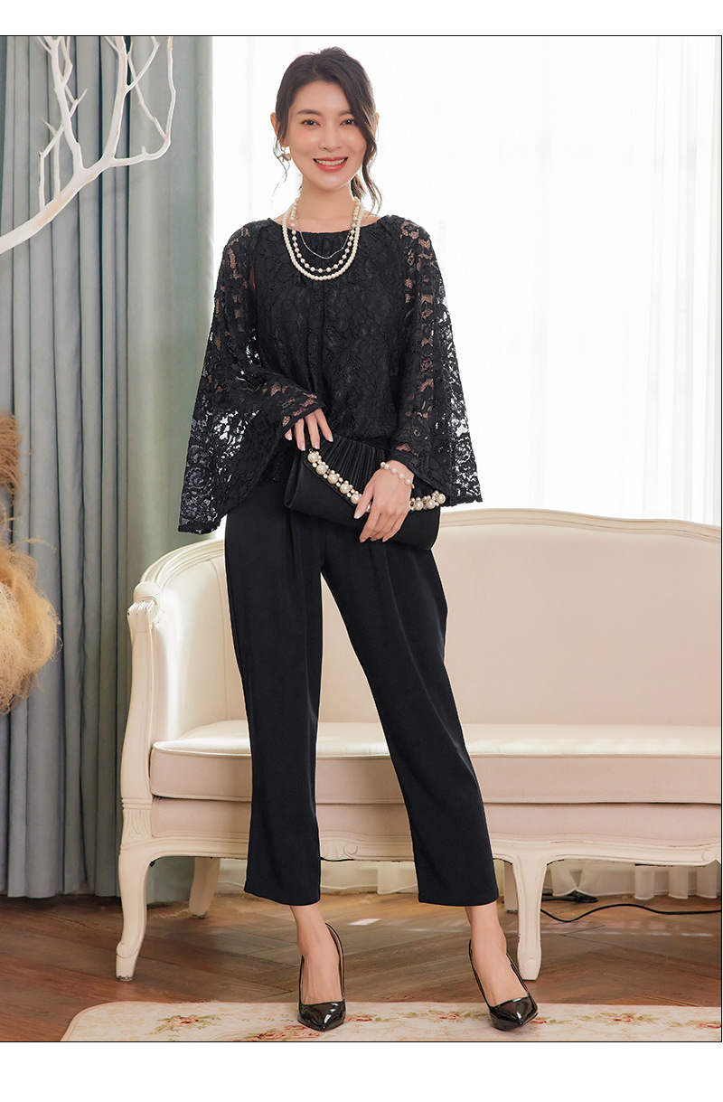 Cui Ying 우아한 통근 레이스 배트윙 슬리브 여성용 투피스 쉬폰 셔츠 발목 길이 바지 Harlan 캐주얼 봄 88258