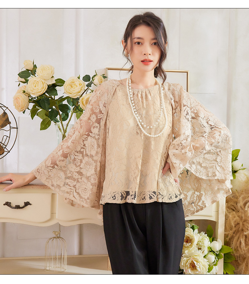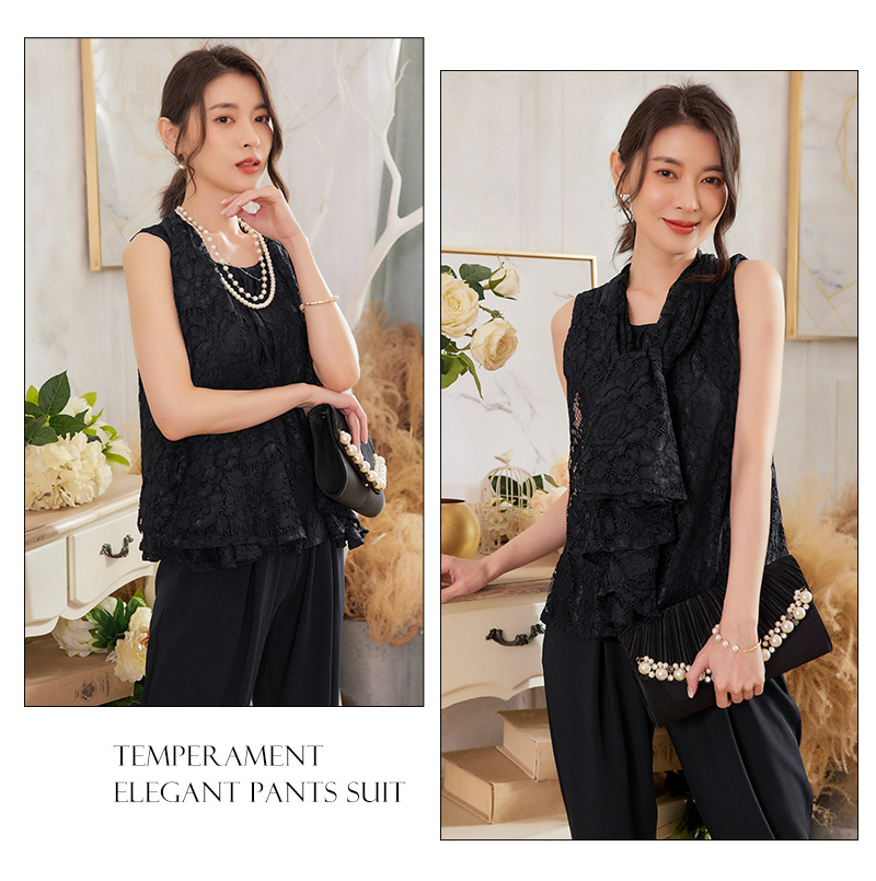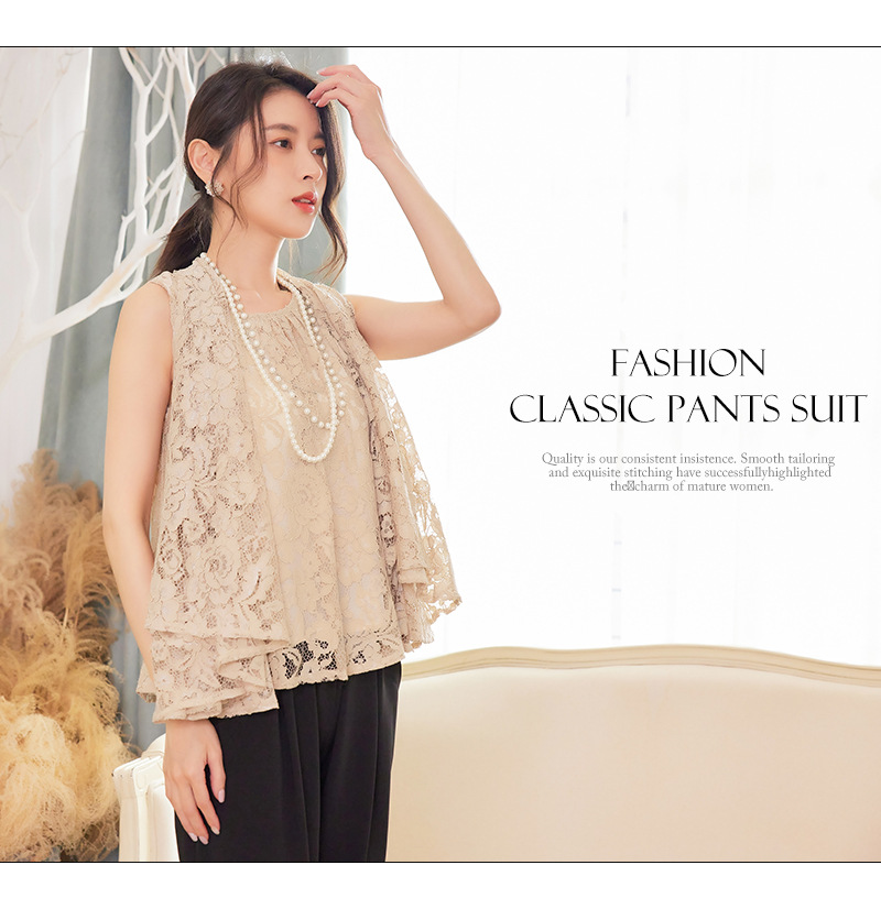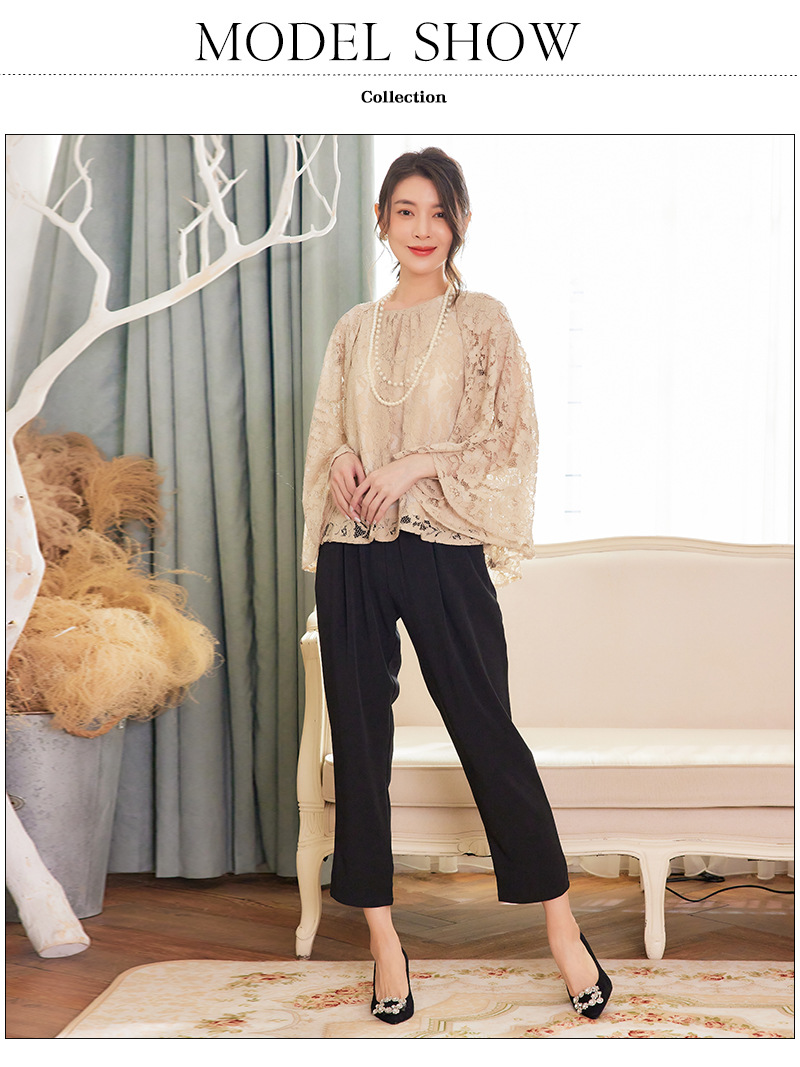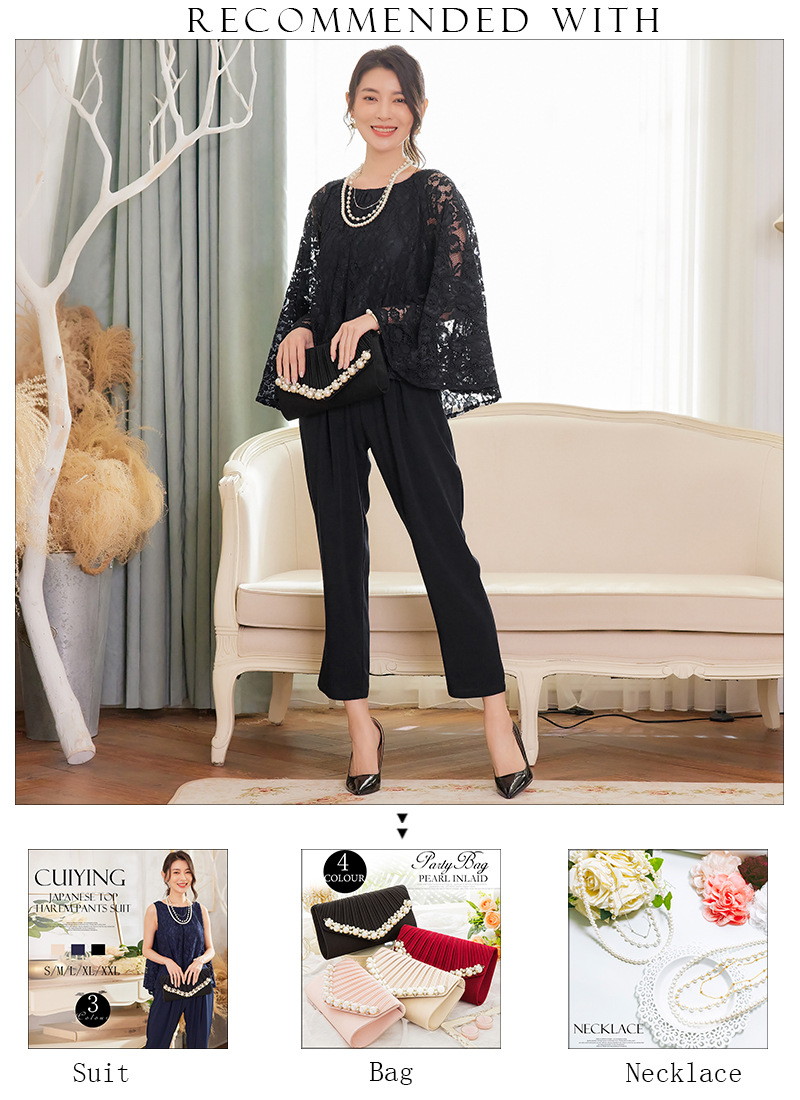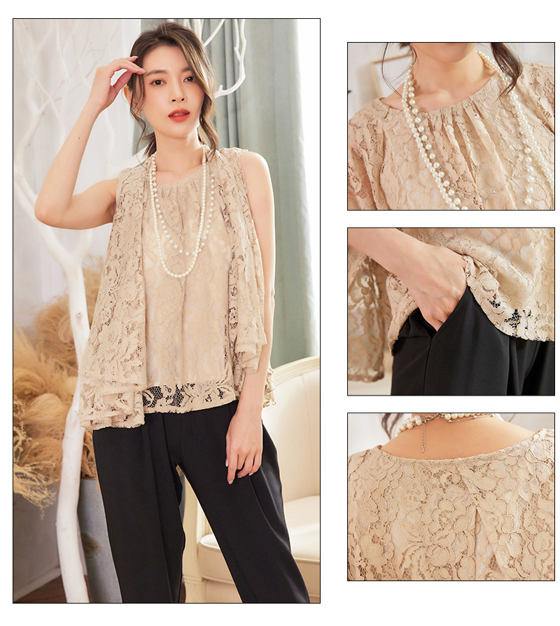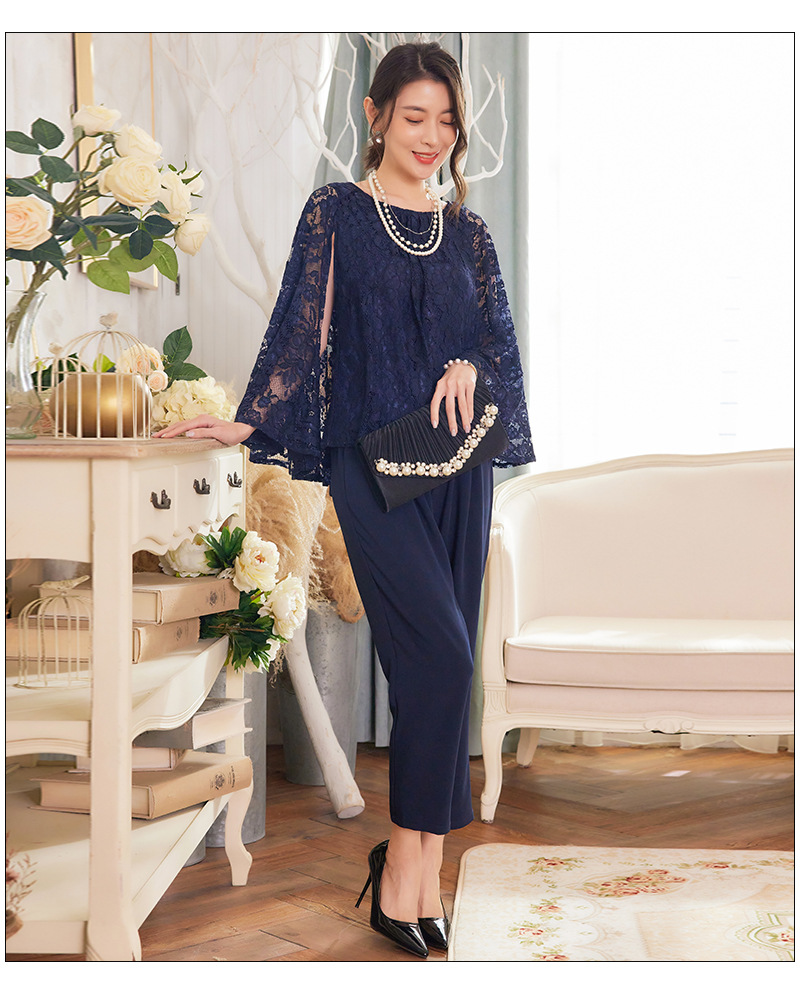 Cui Ying 우아한 통근 레이스 배트윙 슬리브 여성용 투피스 쉬폰 셔츠 발목 길이 바지 Harlan 캐주얼 봄 88258