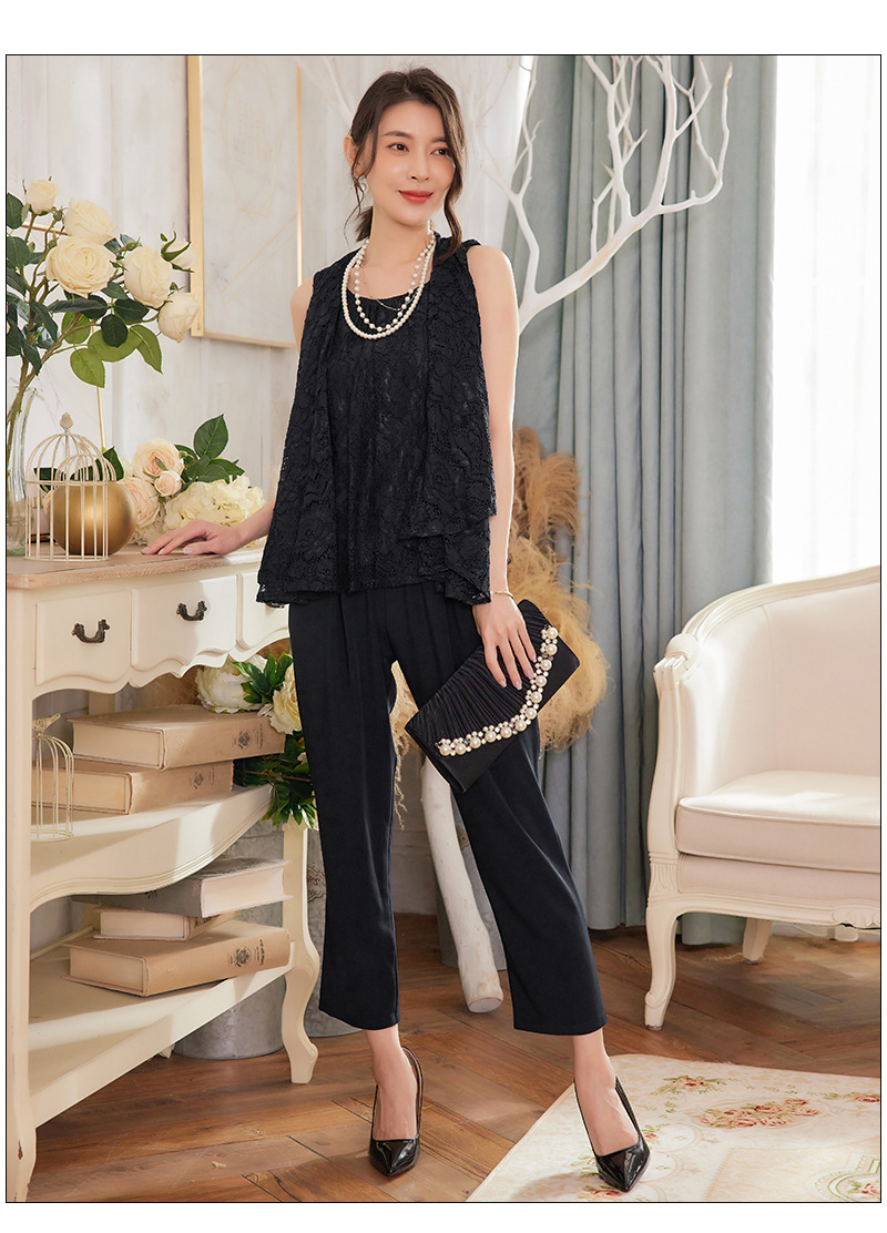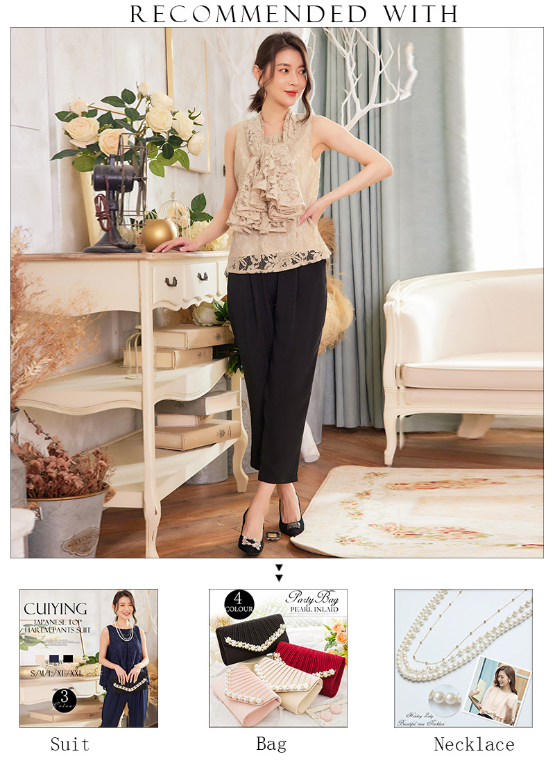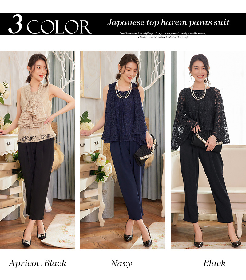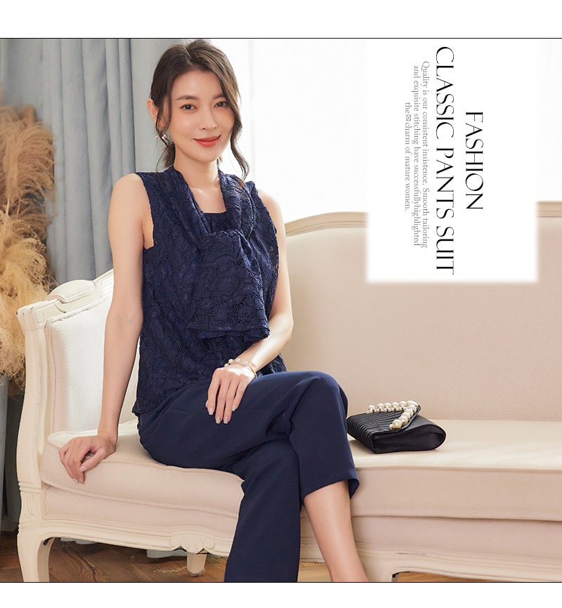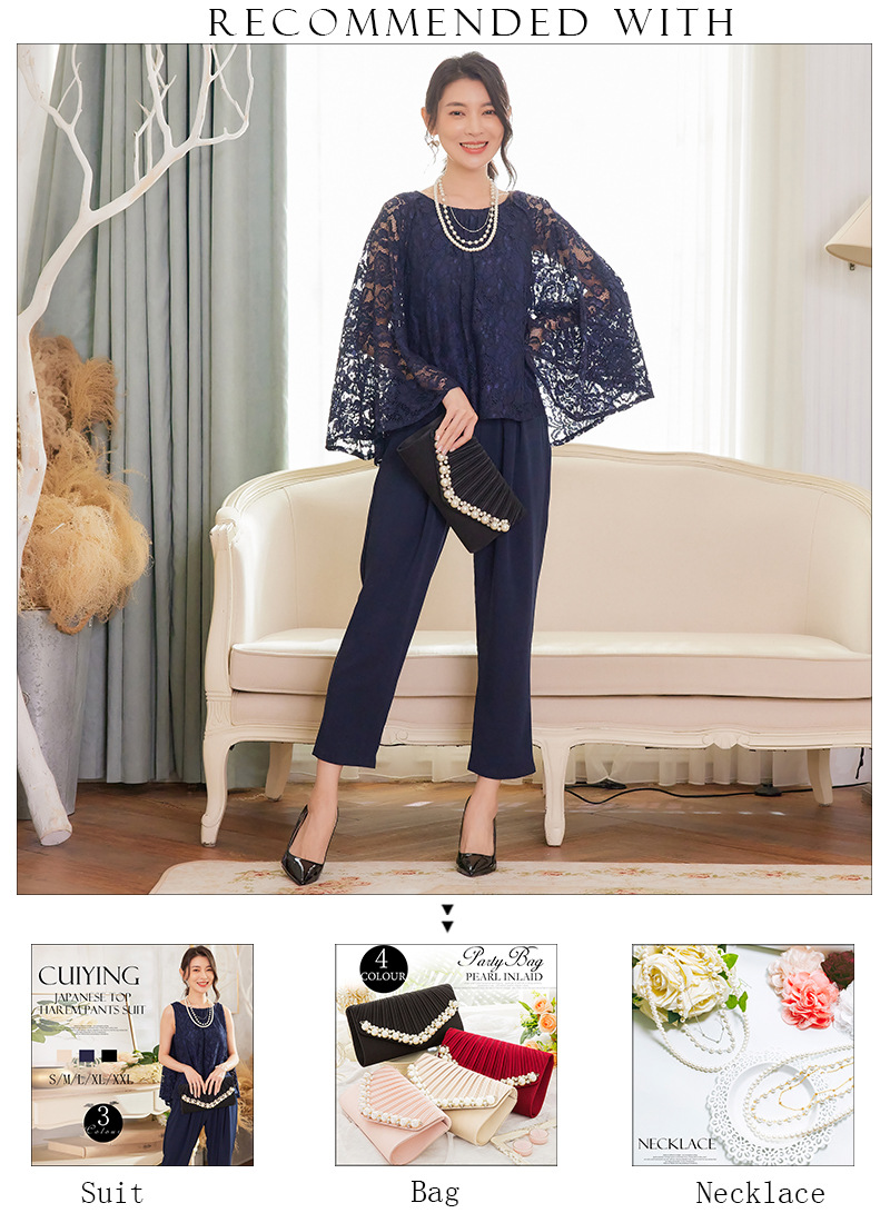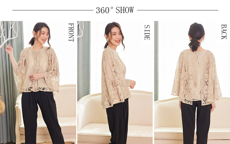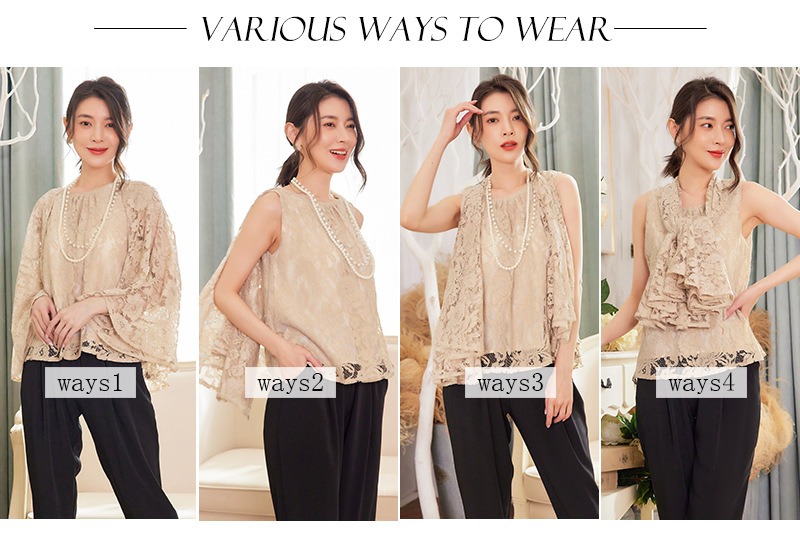 Cui Ying 우아한 통근 레이스 배트윙 슬리브 여성용 투피스 쉬폰 셔츠 발목 길이 바지 Harlan 캐주얼 봄 88258