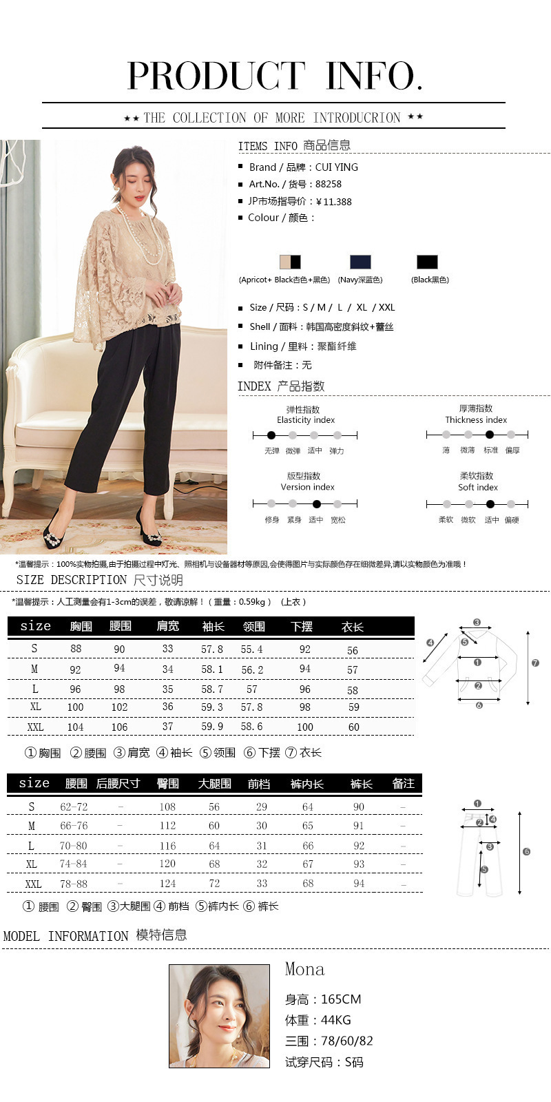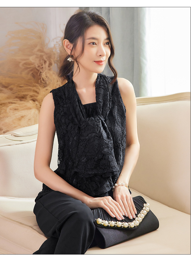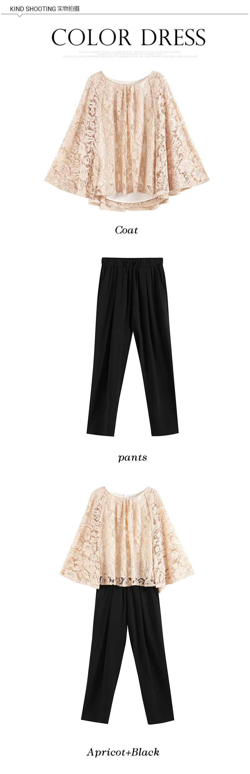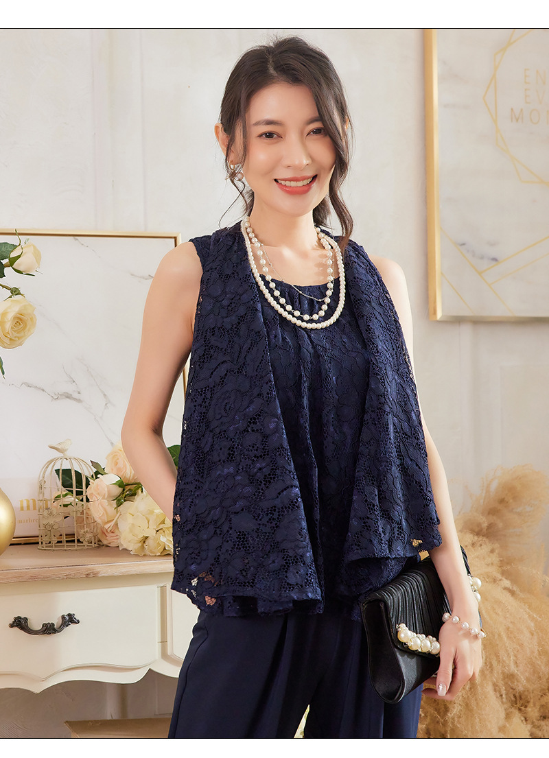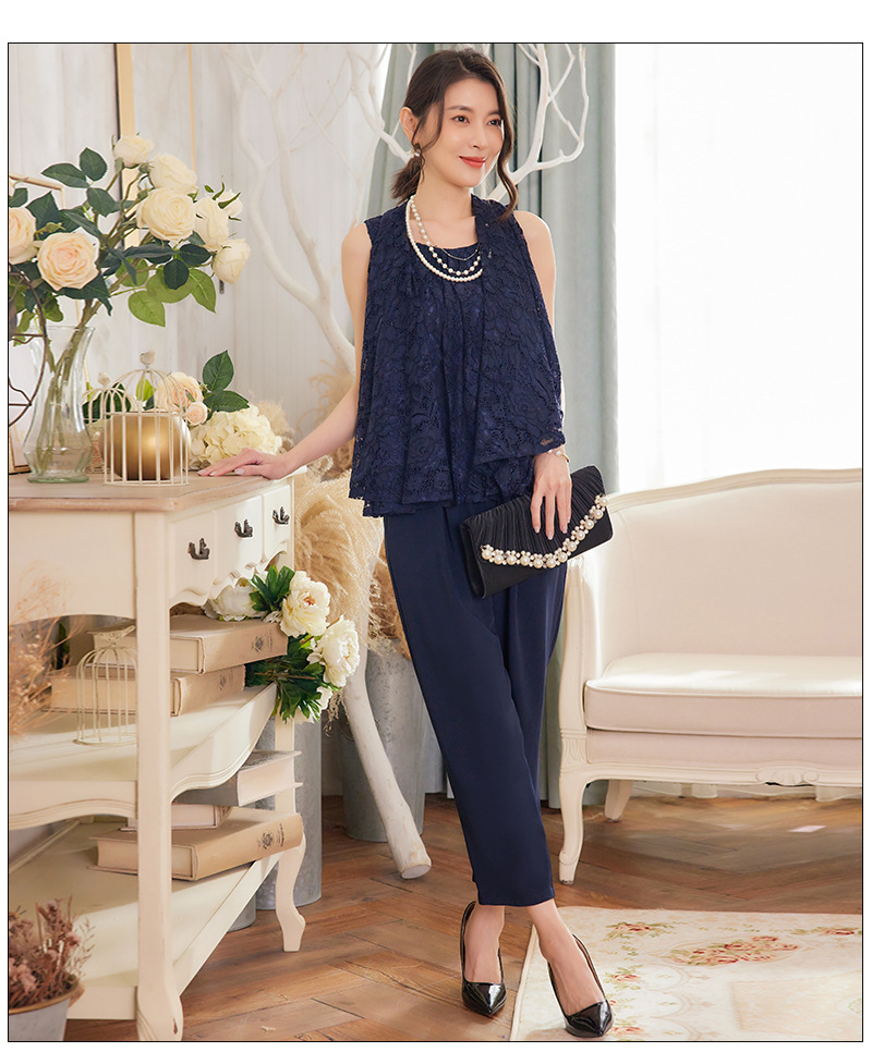 Cui Ying 우아한 통근 레이스 배트윙 슬리브 여성용 투피스 쉬폰 셔츠 발목 길이 바지 Harlan 캐주얼 봄 88258