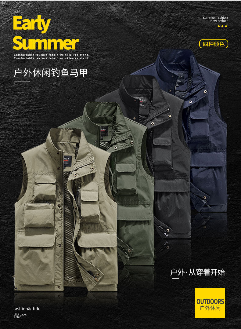 여름 새로운 야외 남자의 낚시 메쉬 멀티 포켓 조끼 캐주얼 등산 사진 조끼 남자스토어 가기