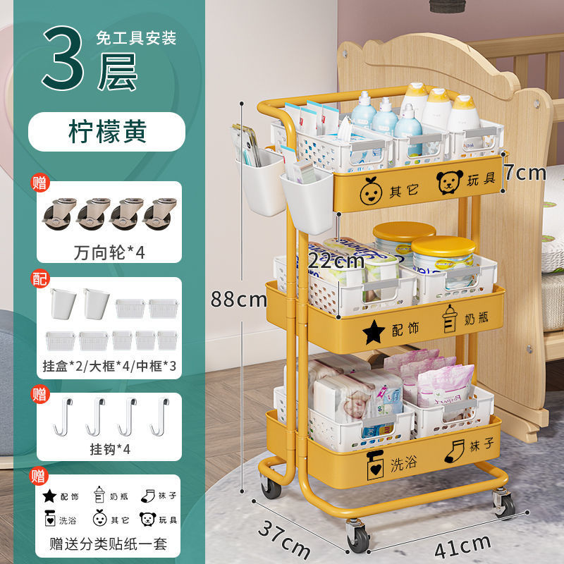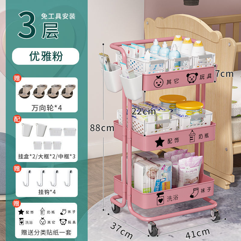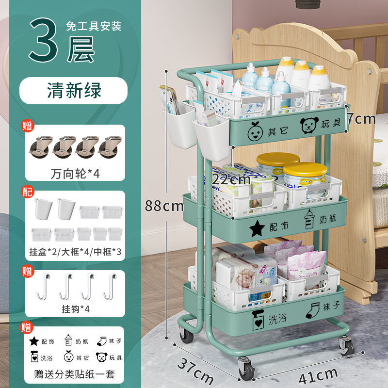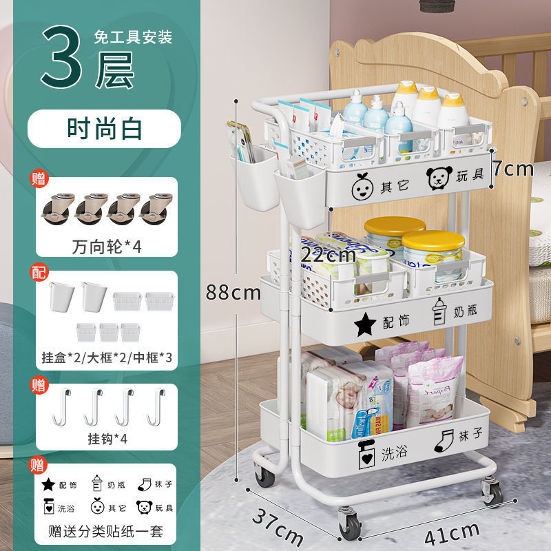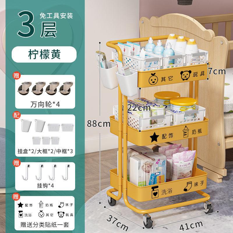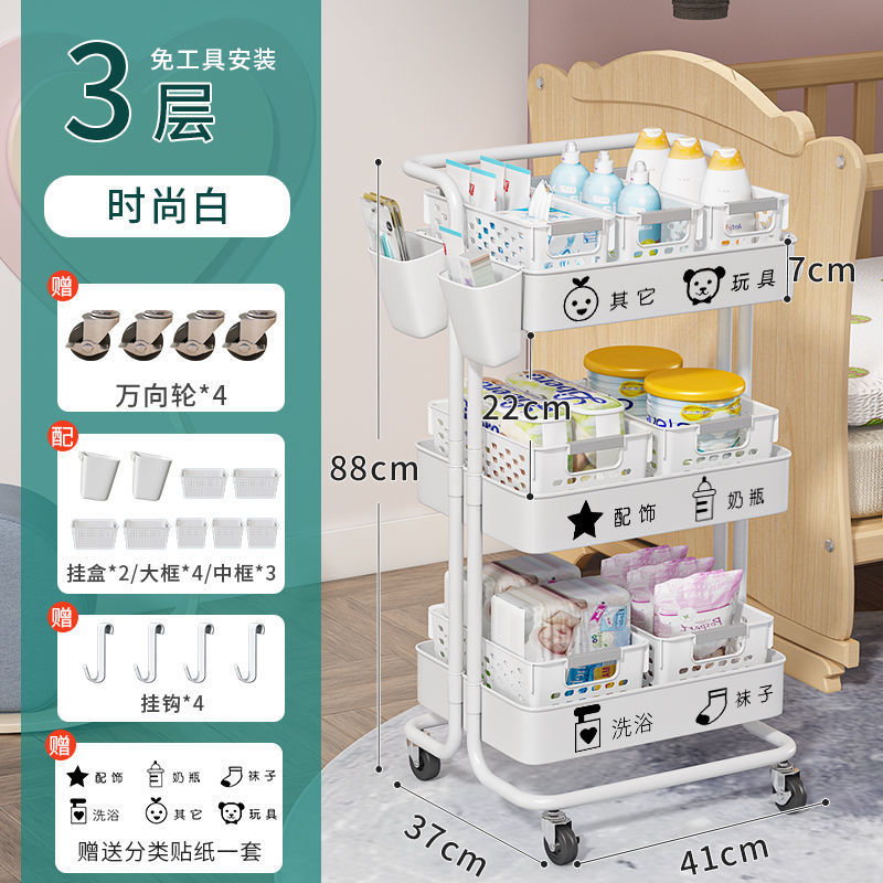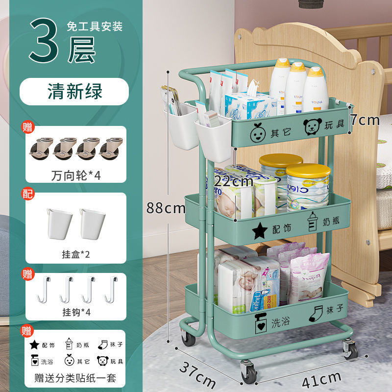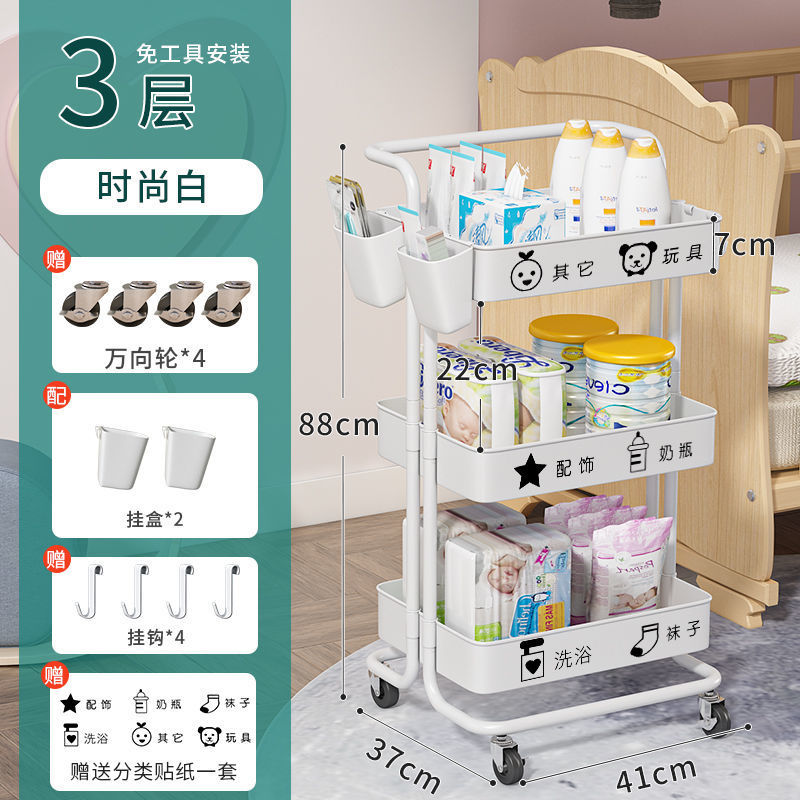 유아용품 보관 랙 트롤리 바닥 스탠딩 다층 침실 침대 옆 모바일 화장품 스낵 보관 랙스토어 가기