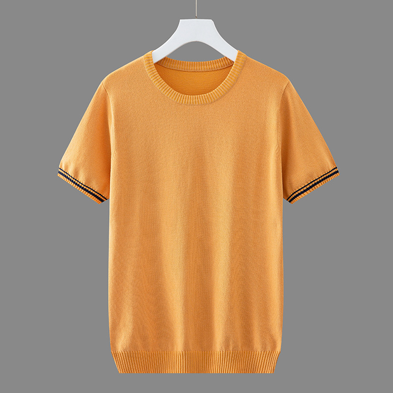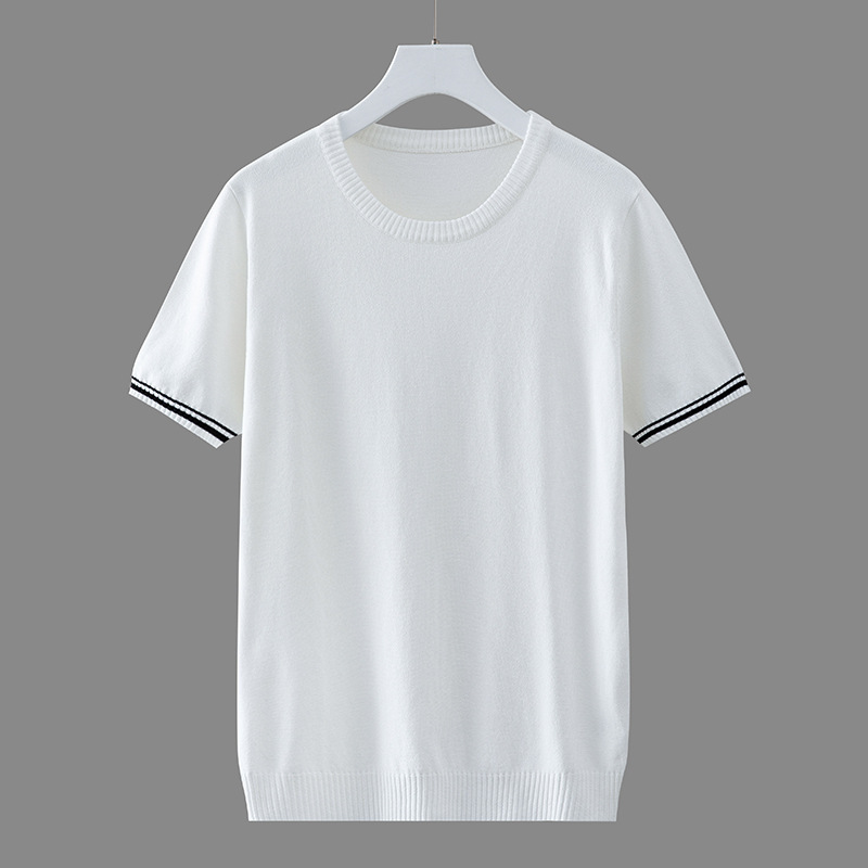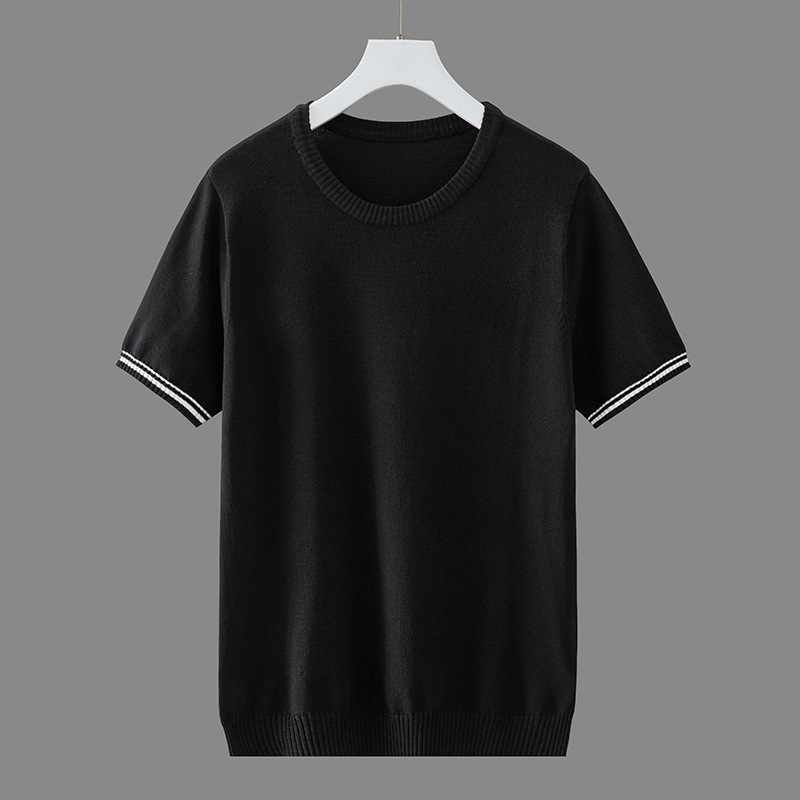 봄과 여름 한국식 얇은 반팔 니트 스웨터 아이스 실크 티셔츠 남성용 슬림핏 크루넥 스웨터 트렌디한 반팔 베이스 셔츠