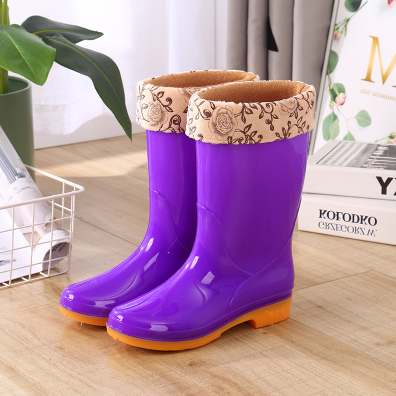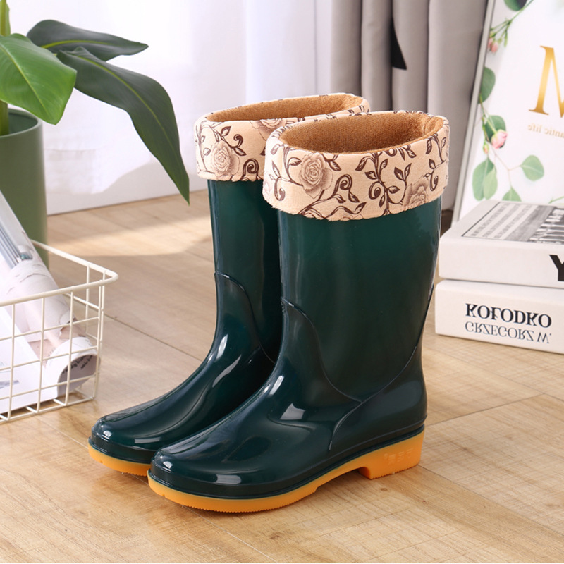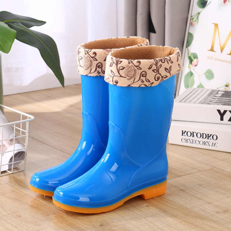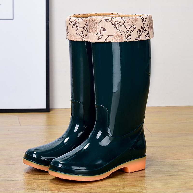 고층 장화 장화 장화 방수 신발 고무 신발 오버 슈즈 여성 패션 중층 면 따뜻한 성인 미끄럼 방지 주방 여름