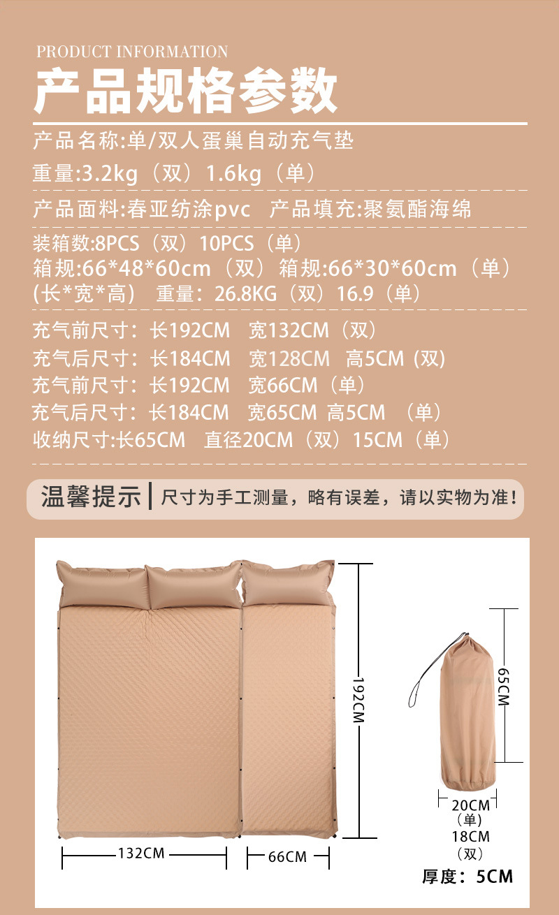 계란 둥지 자동 풍선 매트 야외 캠핑 풍선 매트리스 야외 텐트 방습 매트 피크닉 매트 자동 풍선 침대
