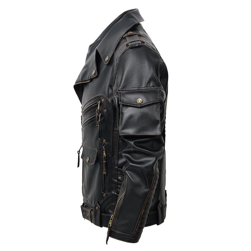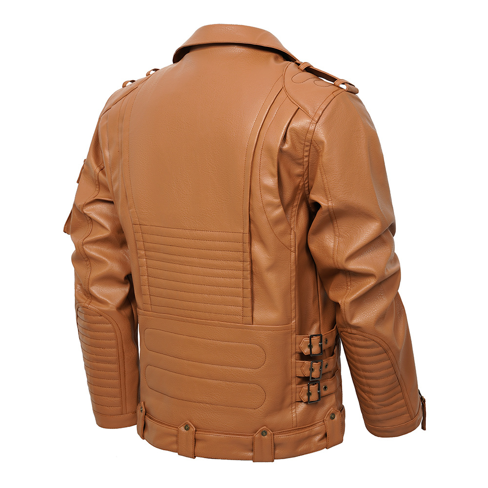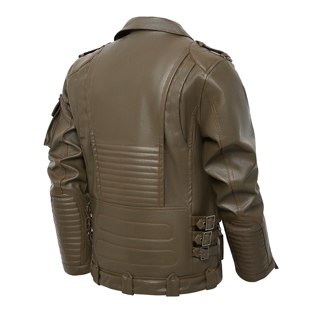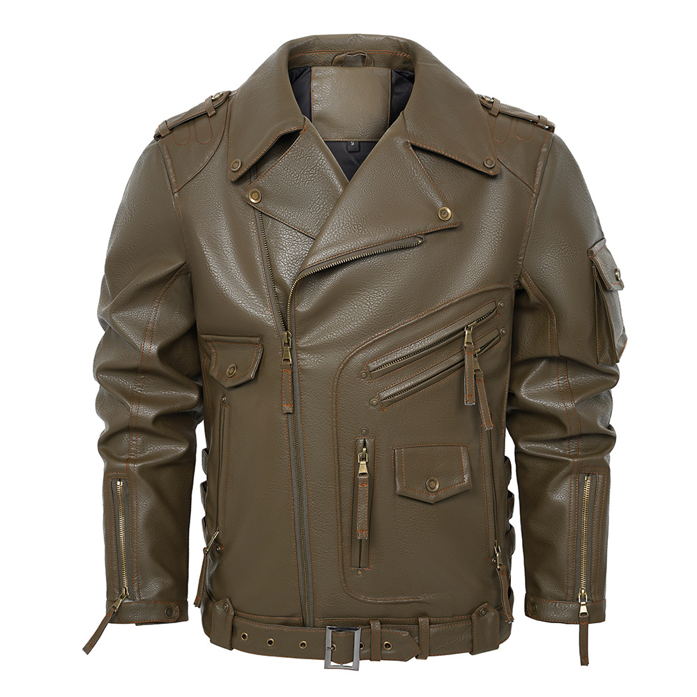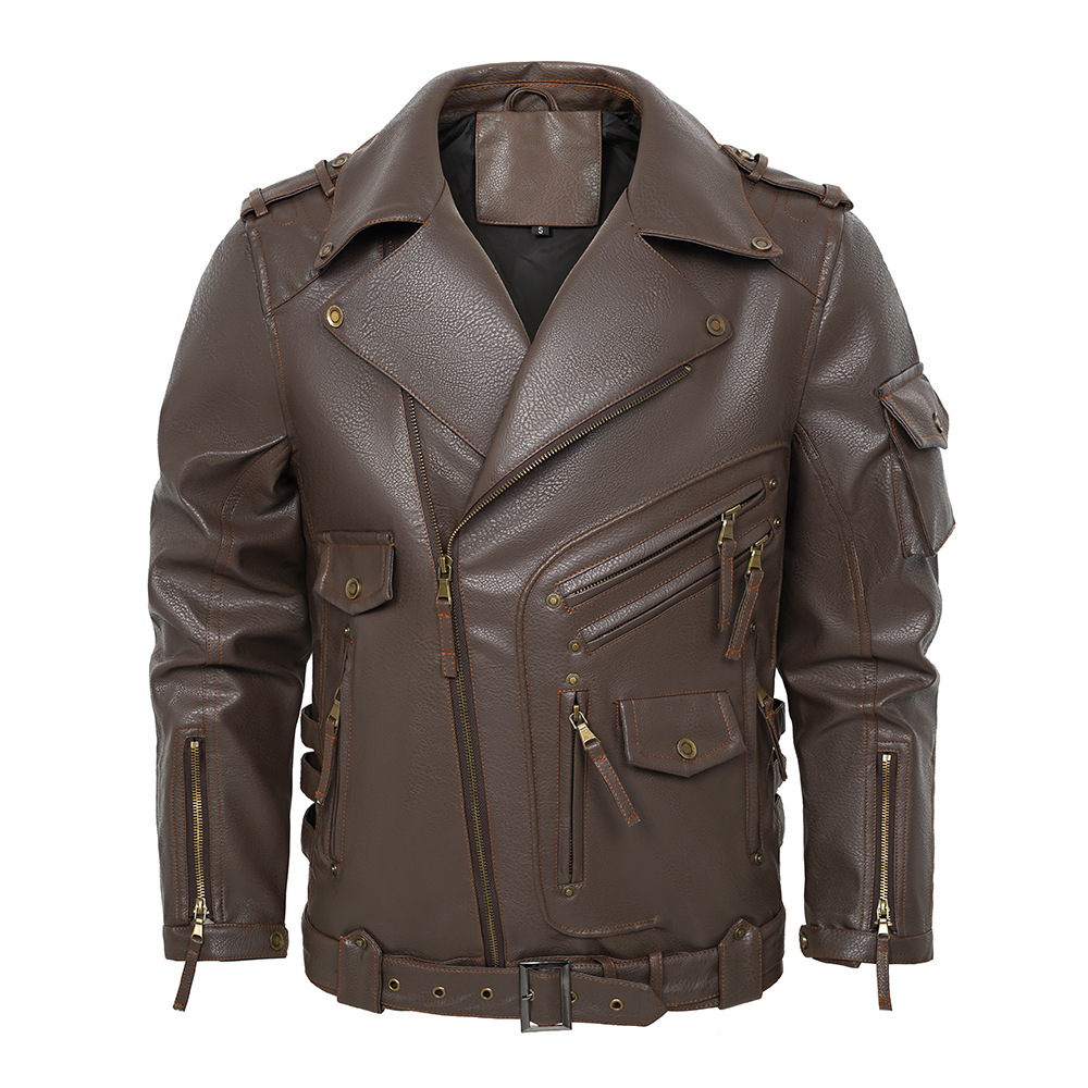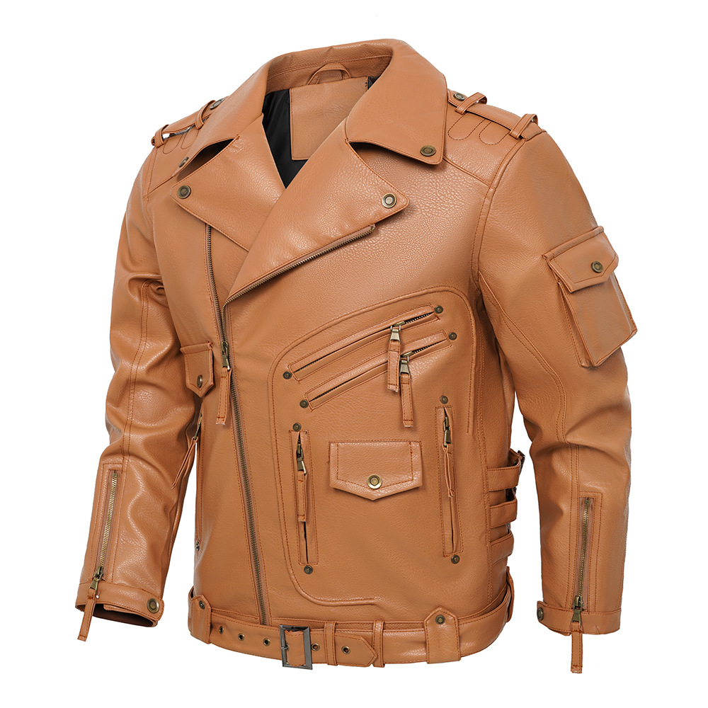 유럽과 미국 크로스 보더 오토바이 PU 가죽 자켓 아마존 멀티 포켓 지퍼 가죽 자켓 남성 가을과 겨울 펑크 자켓 유럽 사이즈