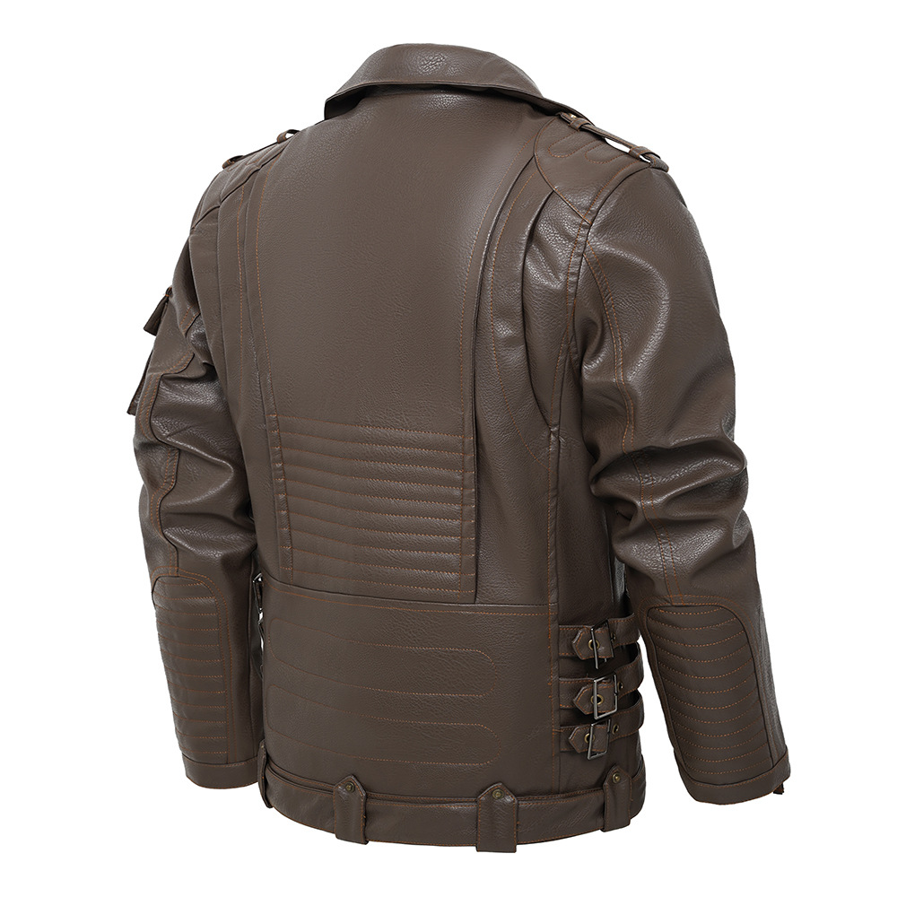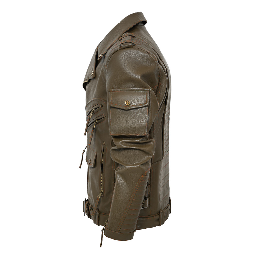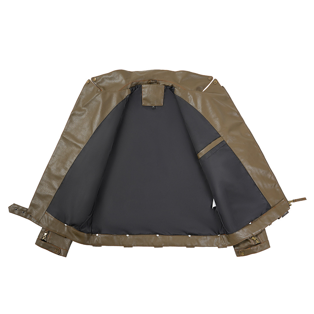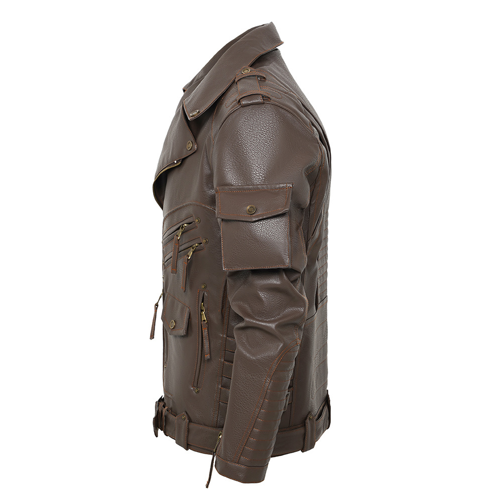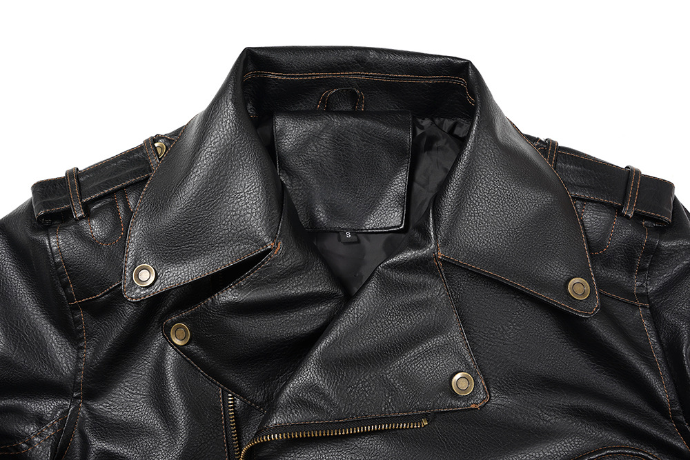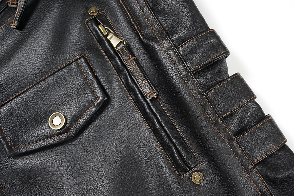 유럽과 미국 크로스 보더 오토바이 PU 가죽 자켓 아마존 멀티 포켓 지퍼 가죽 자켓 남성 가을과 겨울 펑크 자켓 유럽 사이즈
