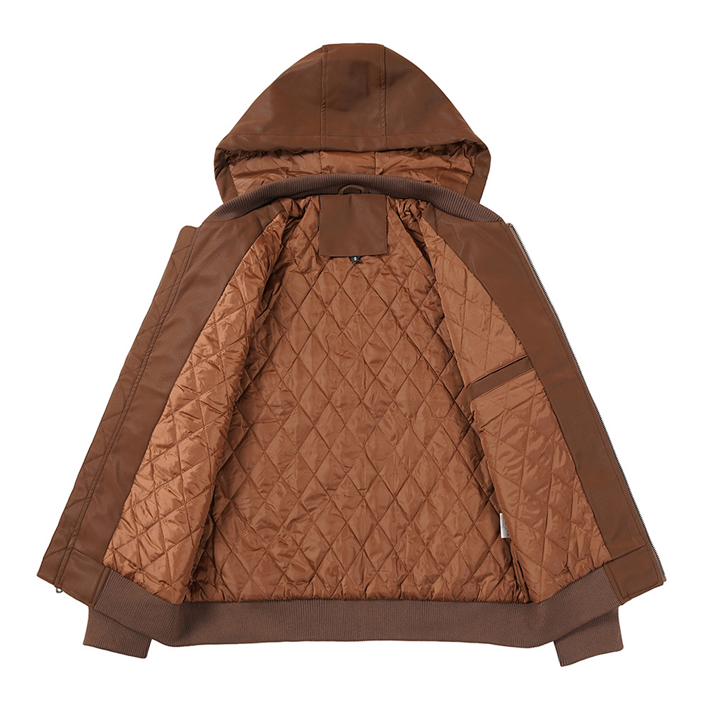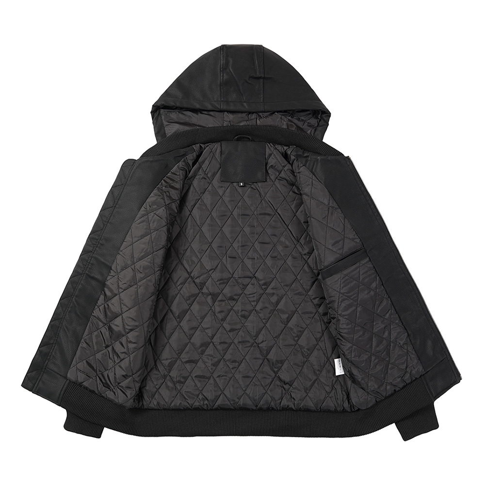 유럽과 미국 크로스 보더 후드 PU 가죽 자켓 아마존 두꺼운 가죽 남성 가을과 겨울 새로운 따뜻한 코트 유럽 사이즈스토어 가기