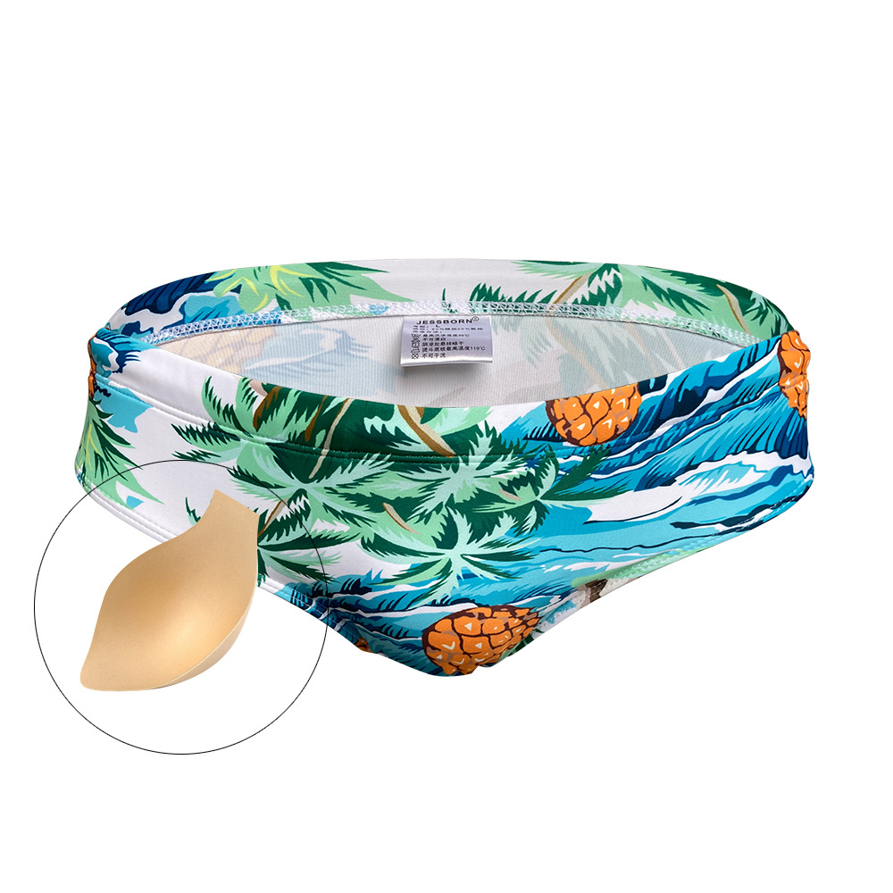 JESSBORN三角泳裤男式欧美印花休闲防尴尬游泳裤青年低腰泳衣跨境