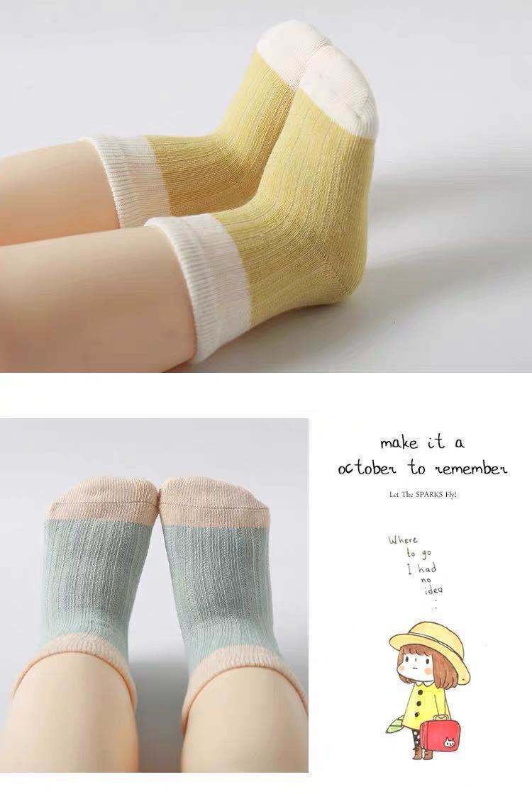 아기 양말 봄과 가을 귀여운 대조 색 신생아 양말 아기 소년과 소녀 통기성 느슨한 미끄럼 방지 바닥 양말 소녀
