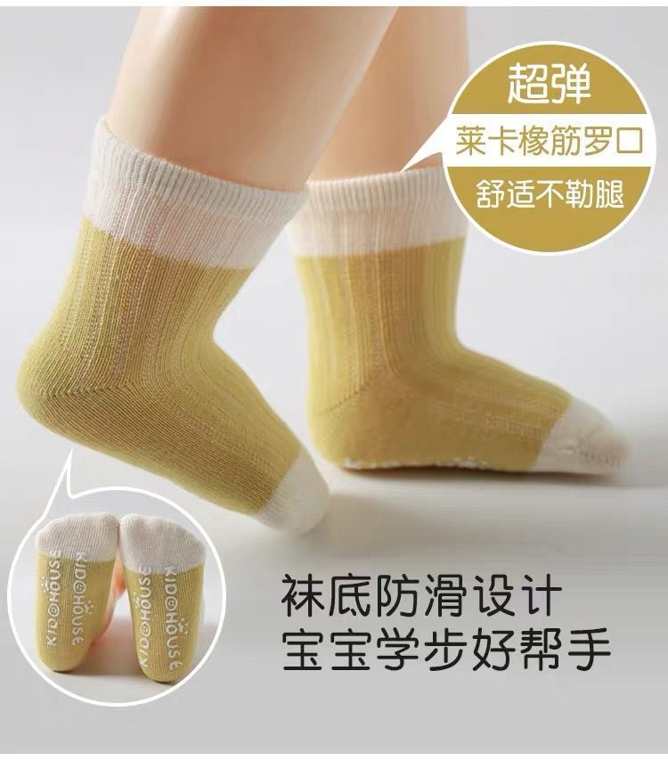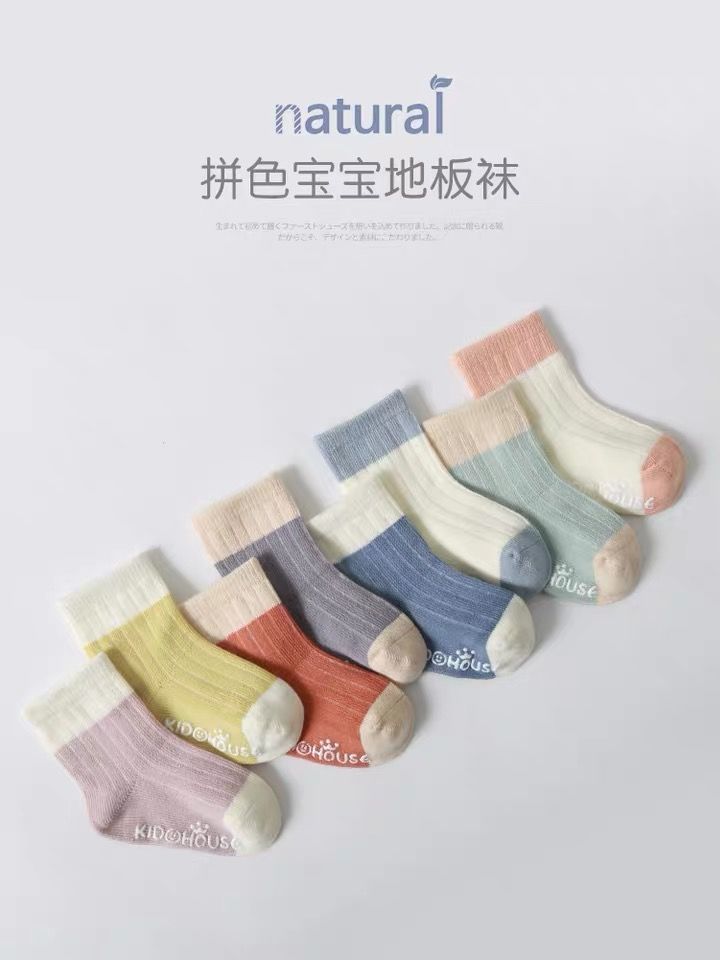 아기 양말 봄과 가을 귀여운 대조 색 신생아 양말 아기 소년과 소녀 통기성 느슨한 미끄럼 방지 바닥 양말 소녀스토어 가기