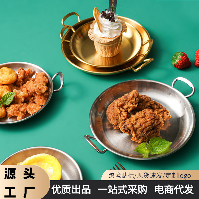 304 스테인리스 스틸 양쪽 손잡이 원형 스낵 접시 레스토랑 샐러드 접시 냉채 사탕 접시 간식 디저트 트레이