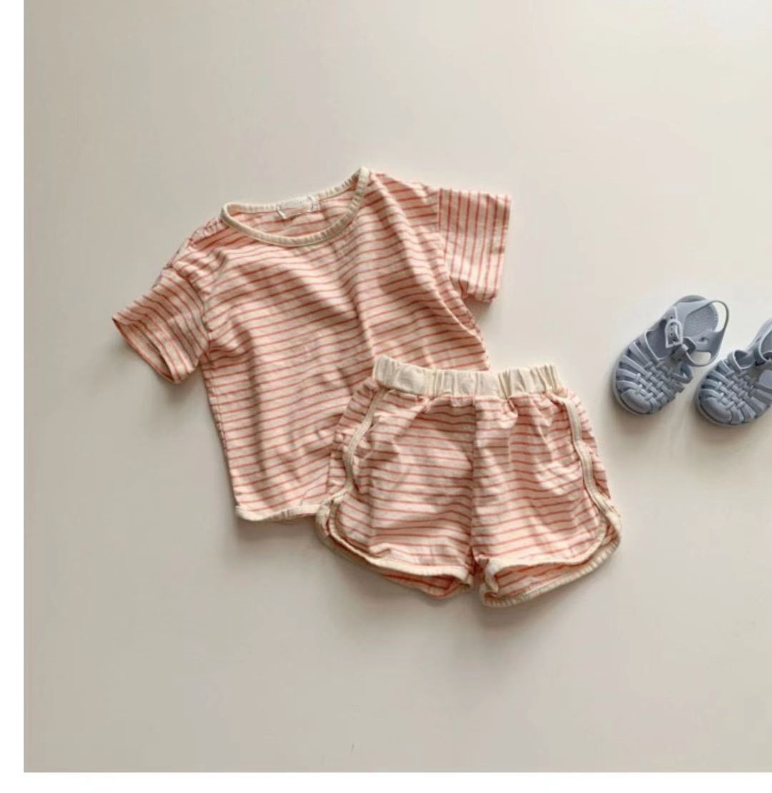 • 오렌지 스트라이프 반팔 티셔츠 + 반바지