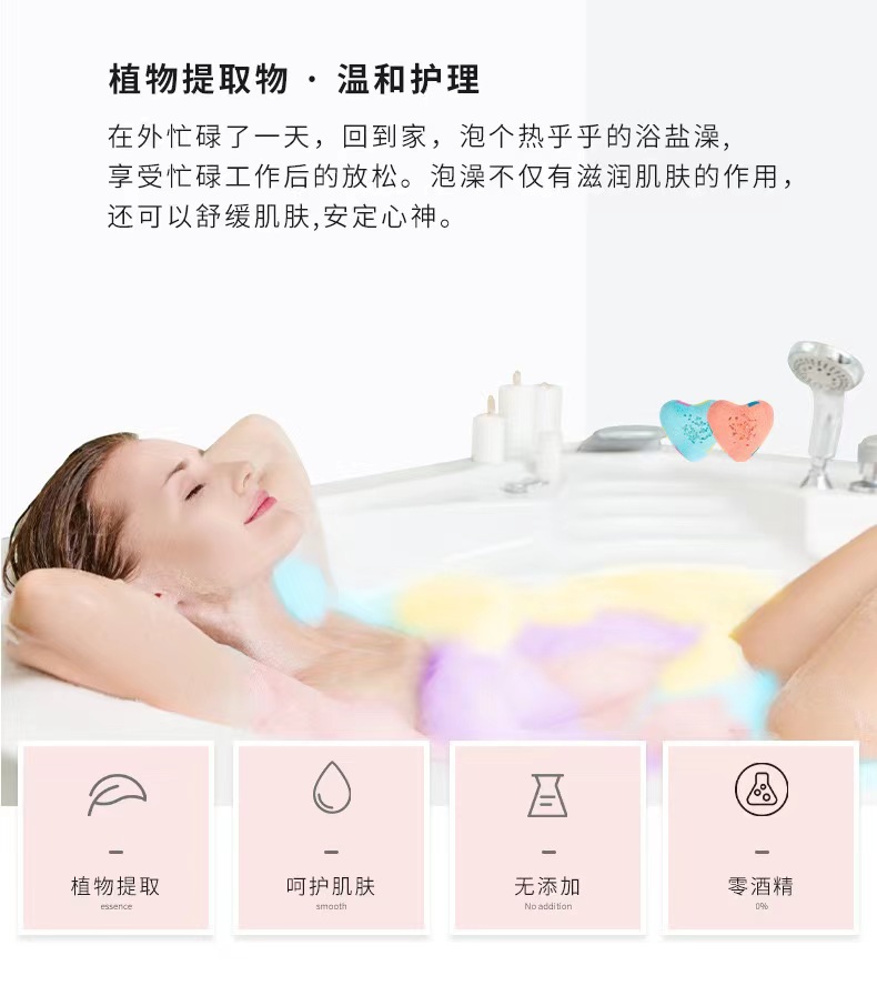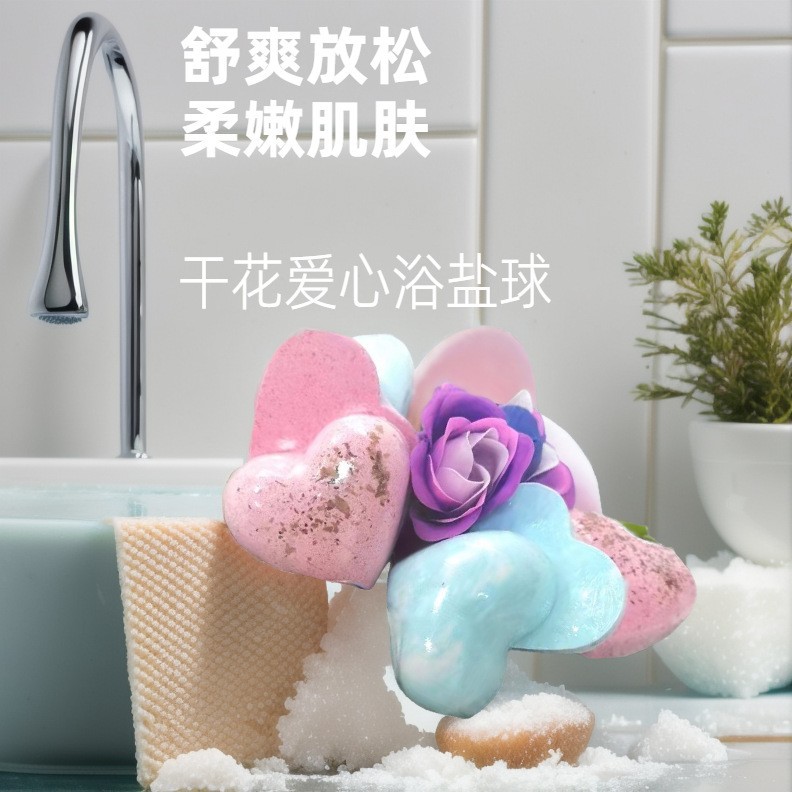 크로스보더 러브바스솔트볼 80g 드라이플라워 버블바스볼 하트모양 입욕제볼 에센셜오일 바스솔트볼 아로마테라피