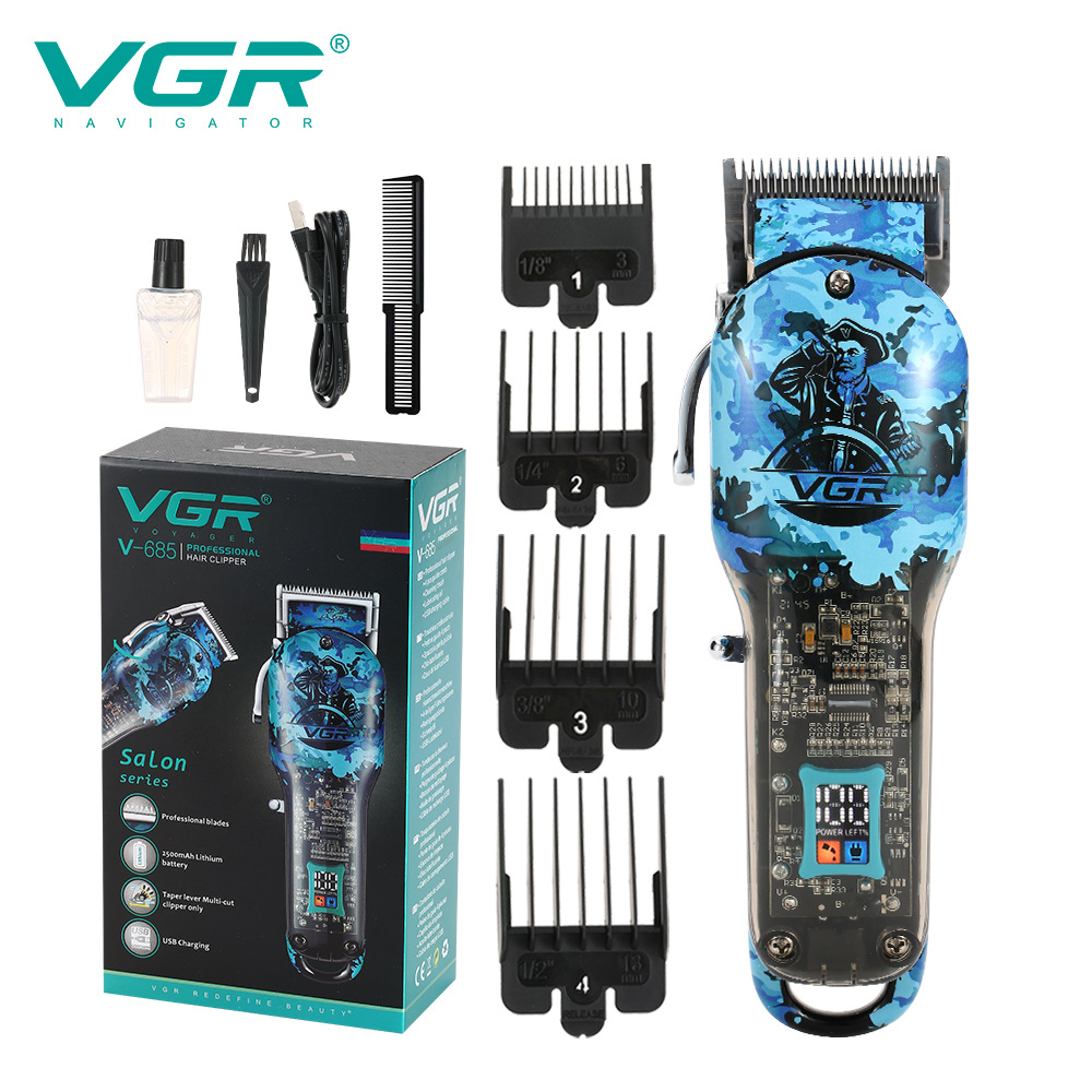 VGR685 크로스보더 신형 블루 그래피티 헤어 클리퍼 LCD 디지털 디스플레이 전문 전기 이발기 고출력 헤어 커터스토어 가기