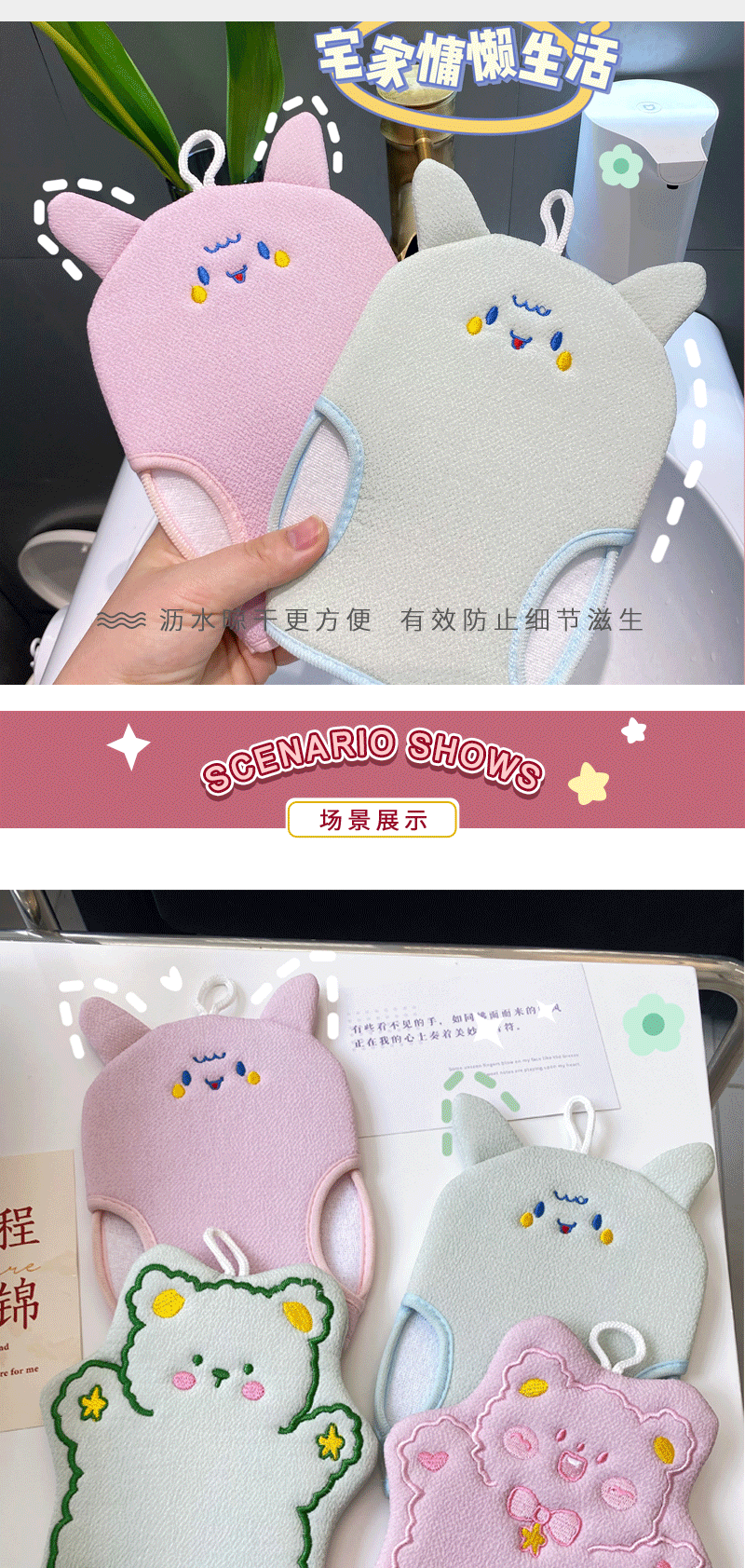 바디 스크럽 타월, 각질 제거용 여성용 목욕 수건, 어린이용 등 문지르는 수건, 만화 캐릭터 강력한 목욕 장갑
