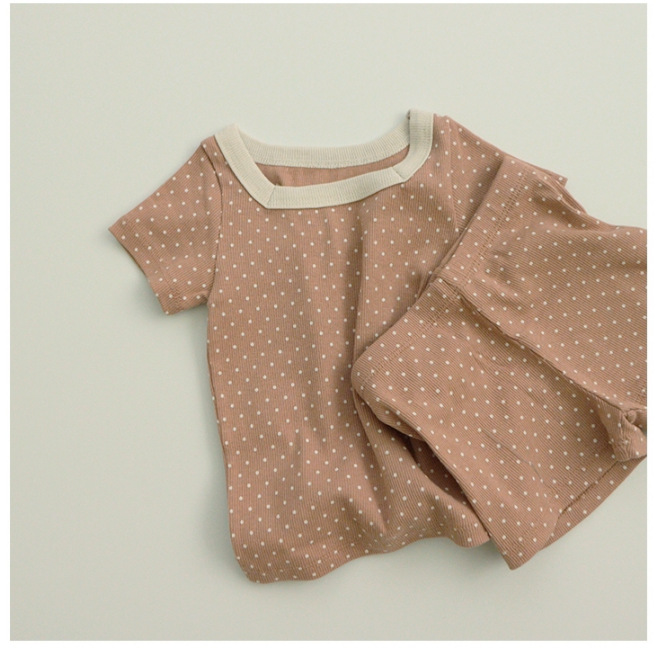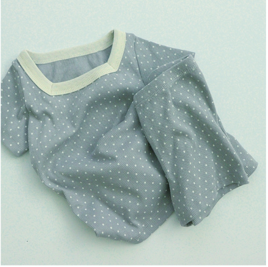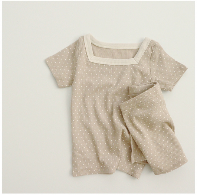 INS 아기의 스퀘어 칼라 탑 반바지 봄과 여름 어린이 스퀘어 칼라 포인트 반팔 홈 세트
