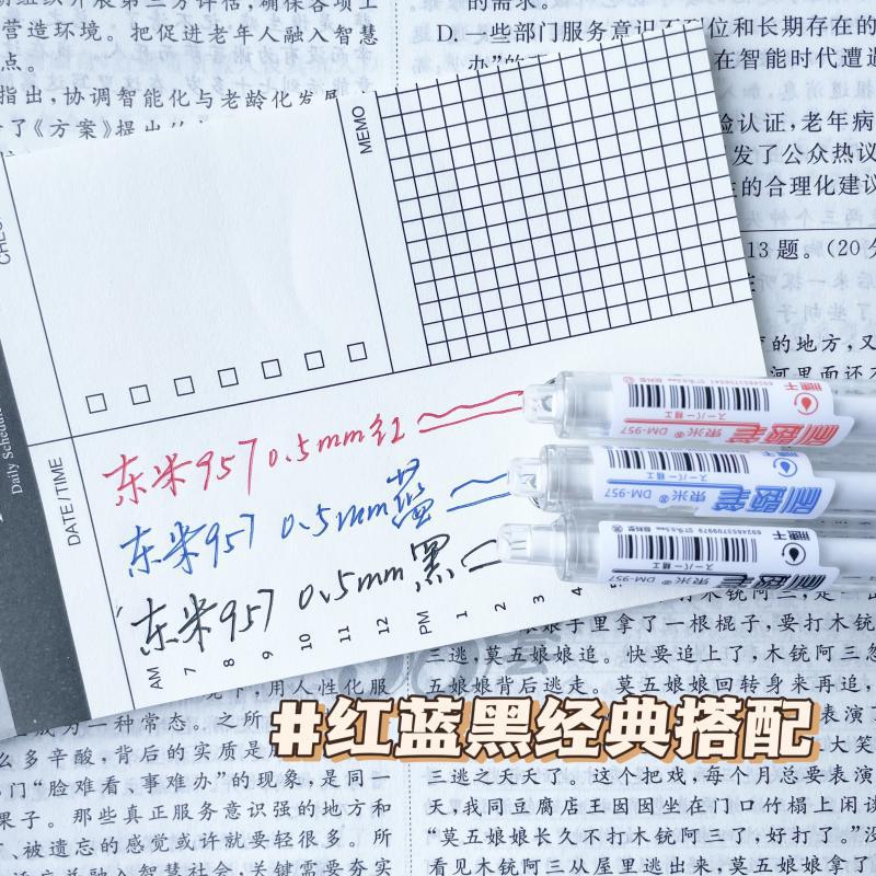 동미 957 브러쉬 펜 빠른 건조 하이 컬러 값 프레스 젤 펜 간단한 학생 시험 카본 블랙 펜 0.5