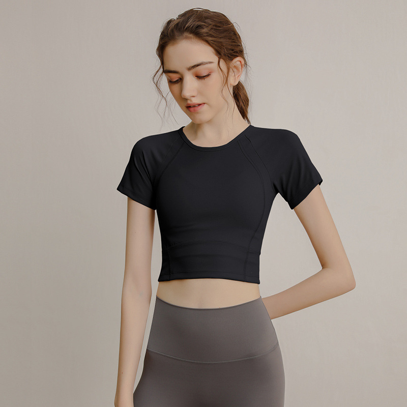 2025 새로운 스포츠 여성 반팔 티셔츠 빠른 건조 통기성 피트니스 옷 달리기 단단한 요가 옷 여름 피트니스 옷