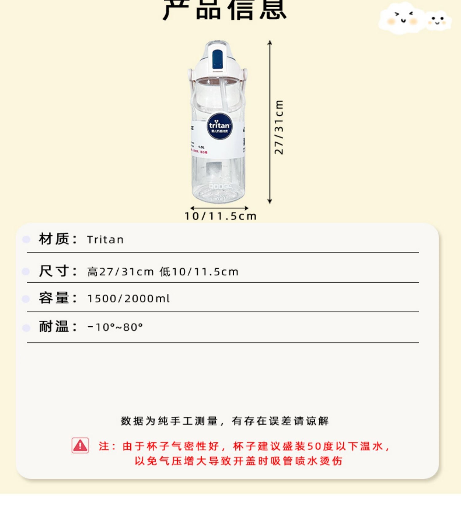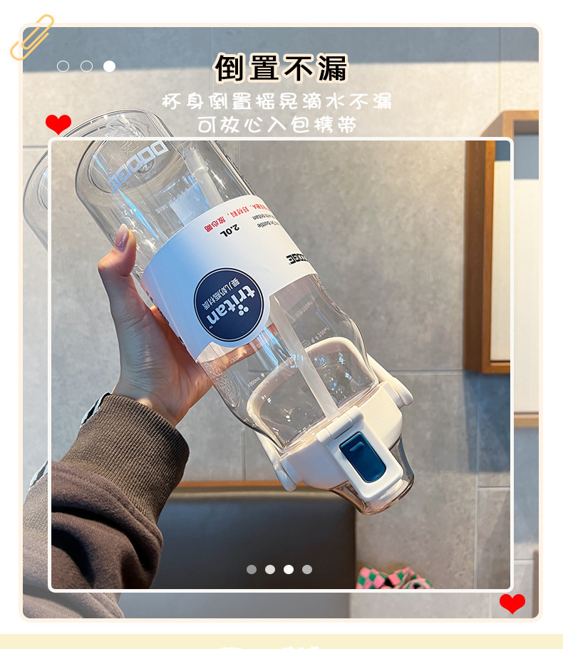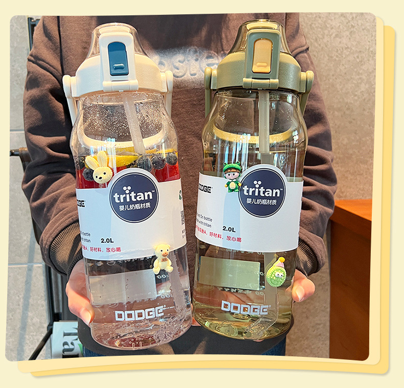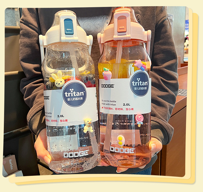 트라이탄 야외 스포츠 물컵 대용량 2000ml 물병 빨대컵 심플하고 멋진 휴대용 컵