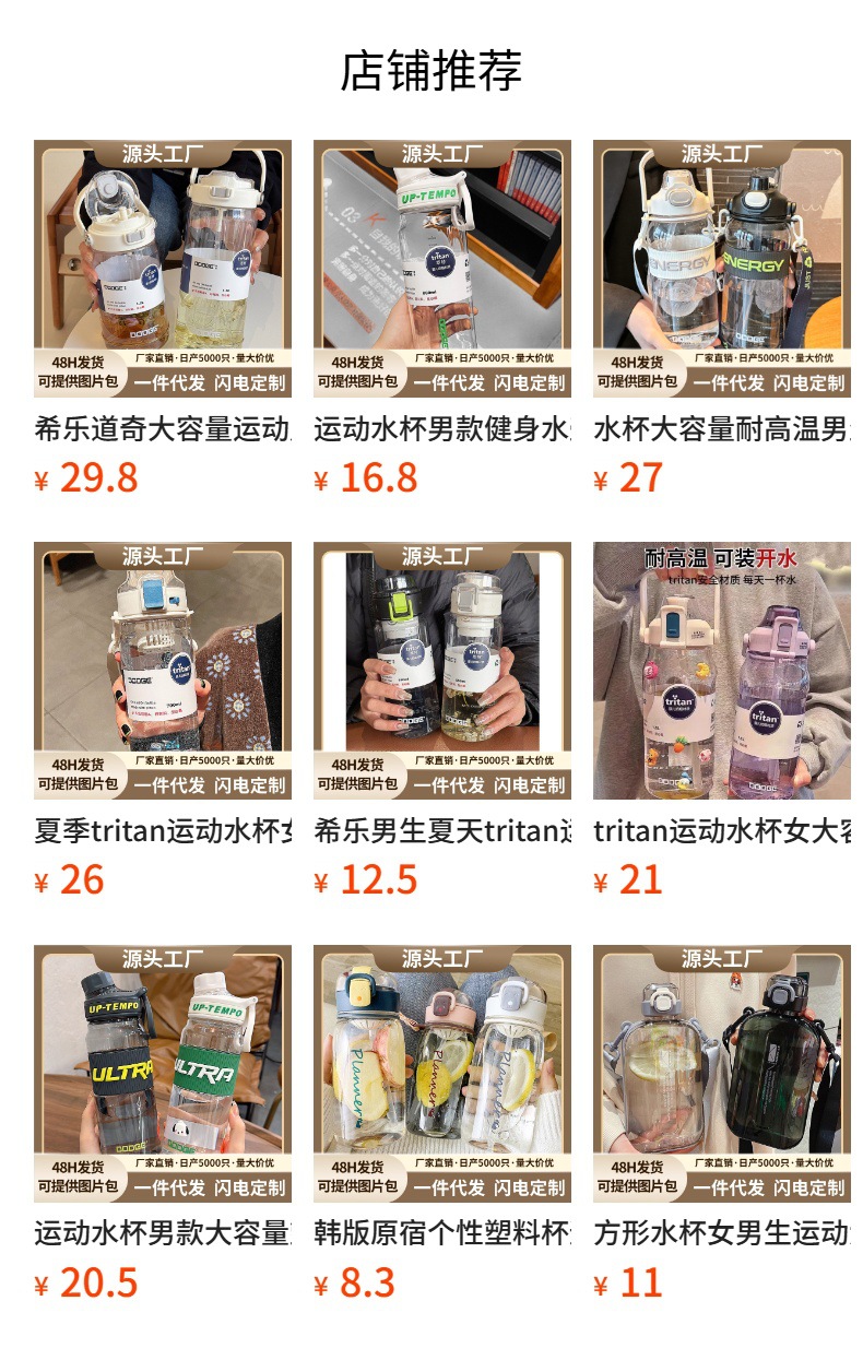 트라이탄 야외 스포츠 물컵 대용량 2000ml 물병 빨대컵 심플하고 멋진 휴대용 컵스토어 가기