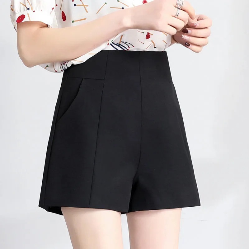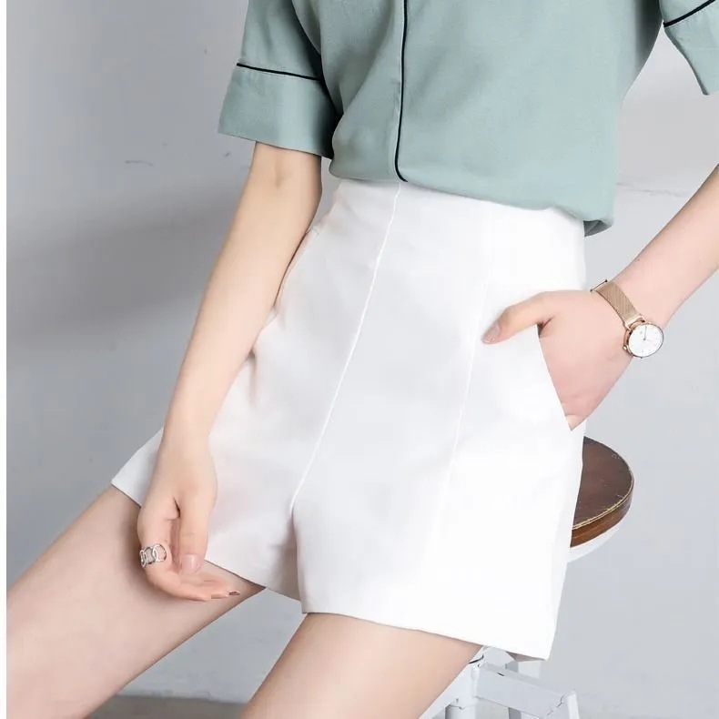 봄과 여름 반바지 여성용 여름 와이드 레그 루즈한 플러스 사이즈 하이 웨이스트 화이트 A 라인 슬림 룩 세트 블랙 얇은 모든 매치 아우터 웨어스토어 가기