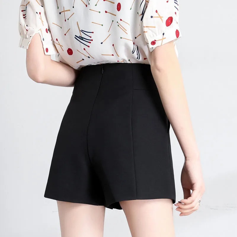 봄과 여름 반바지 여성용 여름 와이드 레그 루즈한 플러스 사이즈 하이 웨이스트 화이트 A 라인 슬림 룩 세트 블랙 얇은 모든 매치 아우터 웨어