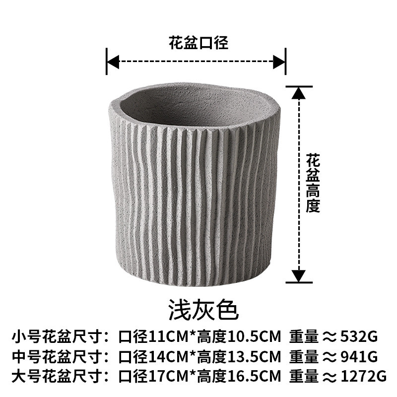 심규 스트라이프 심플 시멘트 화분 북유럽 독특한 크리에이티브 모라티 실내 발코니 스트라이프 그린 식물 화분