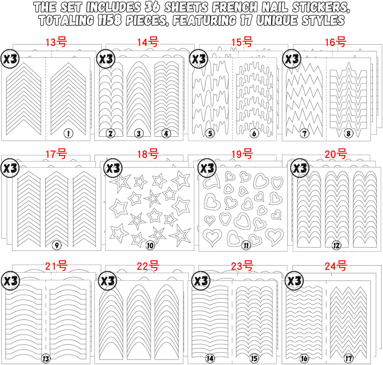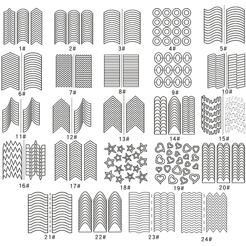 네일 아트 프렌치 스티커 네일 스티커 해외 직구 틱톡 24종 단일 스티커 DIY 스마일 스티커 라인 달 모양 하트 모양 컬러 스티커
