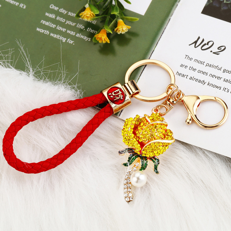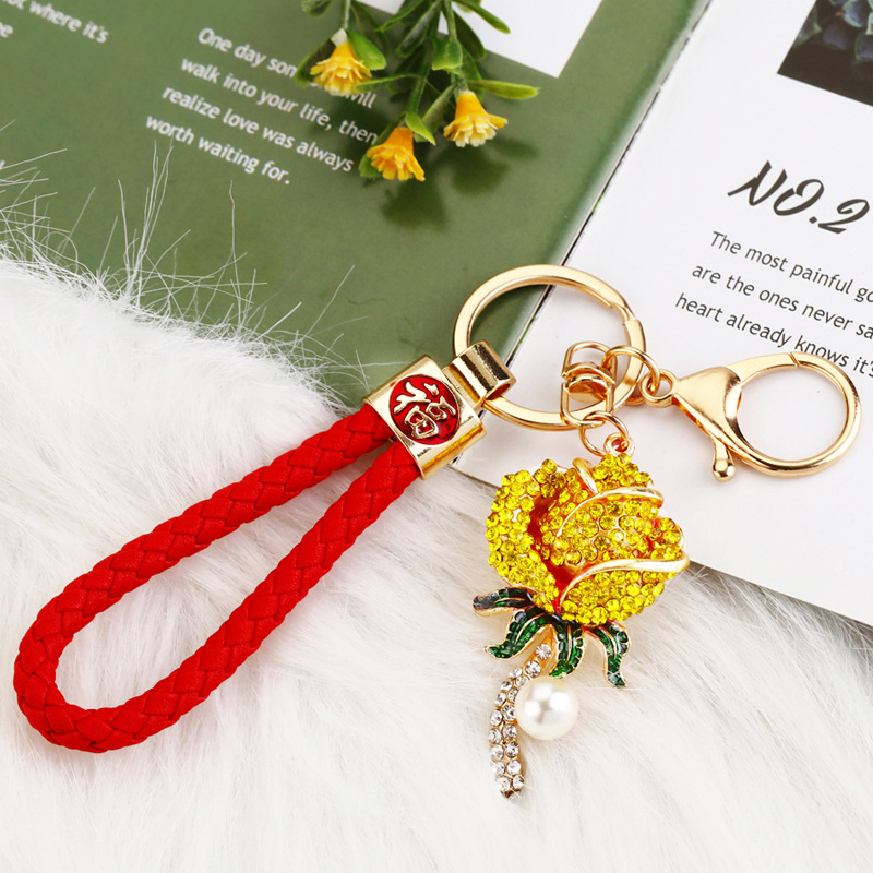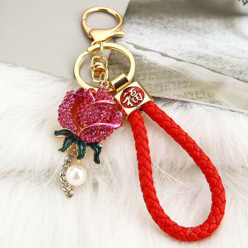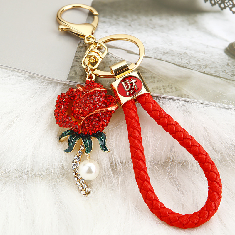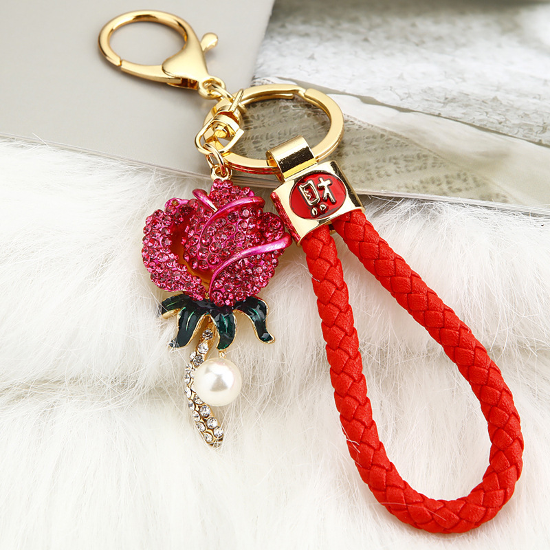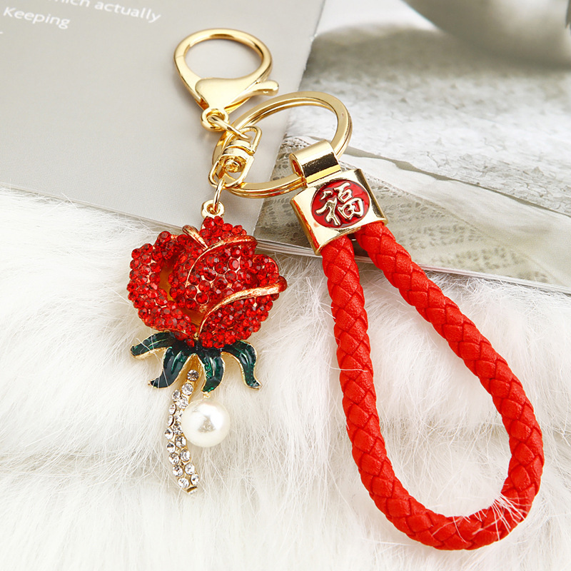 크리 에이 티브 럭키 로프 합금 다이아몬드 로즈 플라워 키 체인 여성용 자동차 가방 펜던트 발렌타인 데이 선물