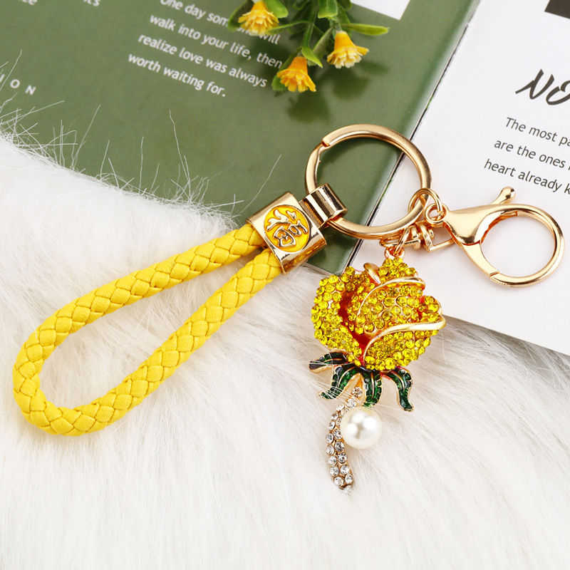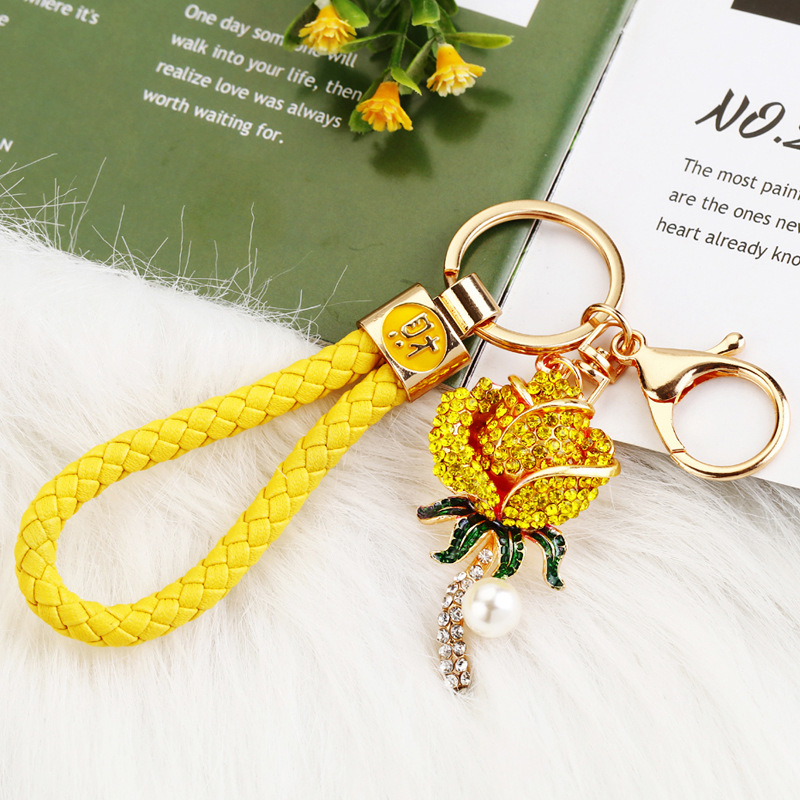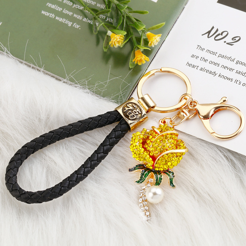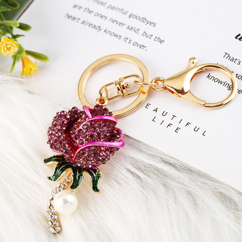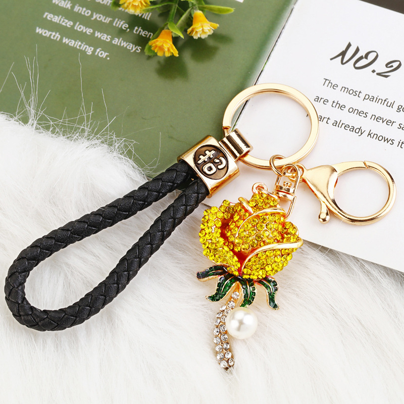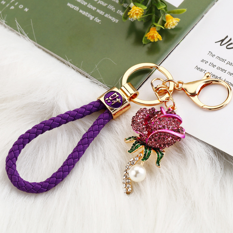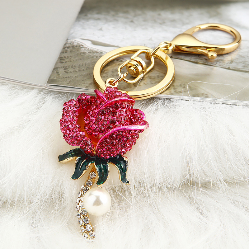 크리 에이 티브 럭키 로프 합금 다이아몬드 로즈 플라워 키 체인 여성용 자동차 가방 펜던트 발렌타인 데이 선물