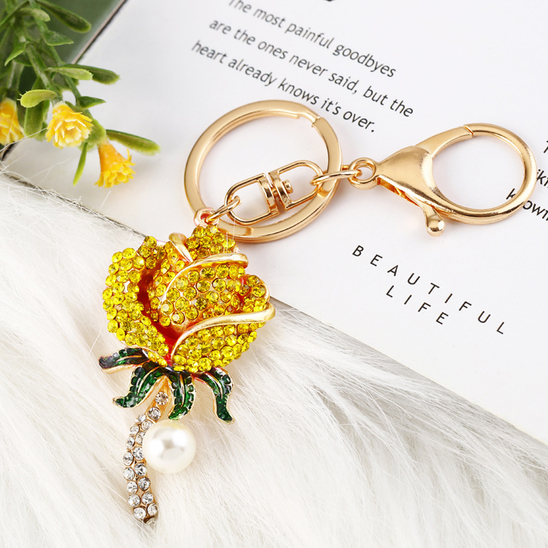 크리 에이 티브 럭키 로프 합금 다이아몬드 로즈 플라워 키 체인 여성용 자동차 가방 펜던트 발렌타인 데이 선물스토어 가기