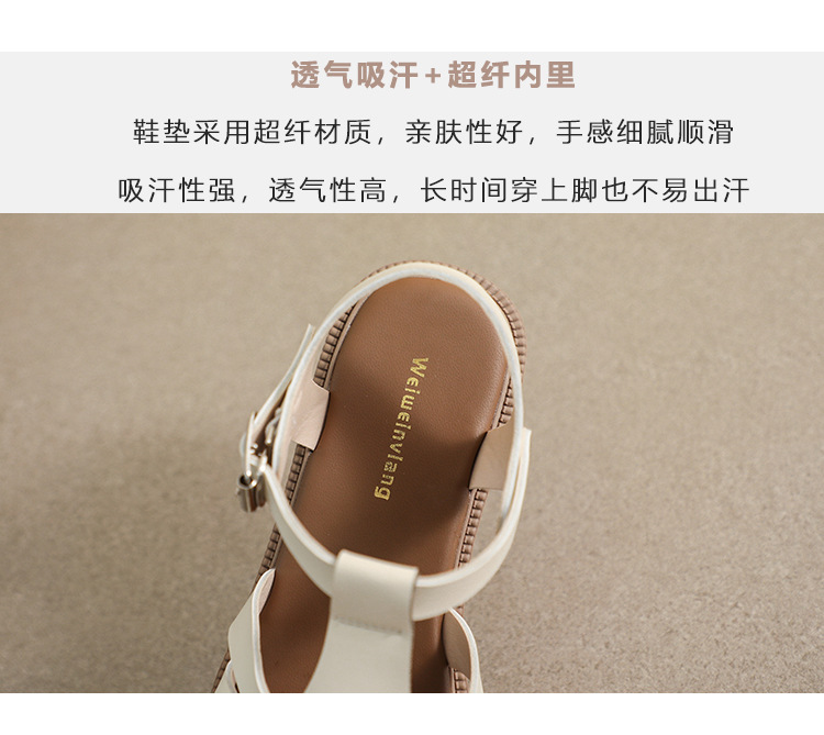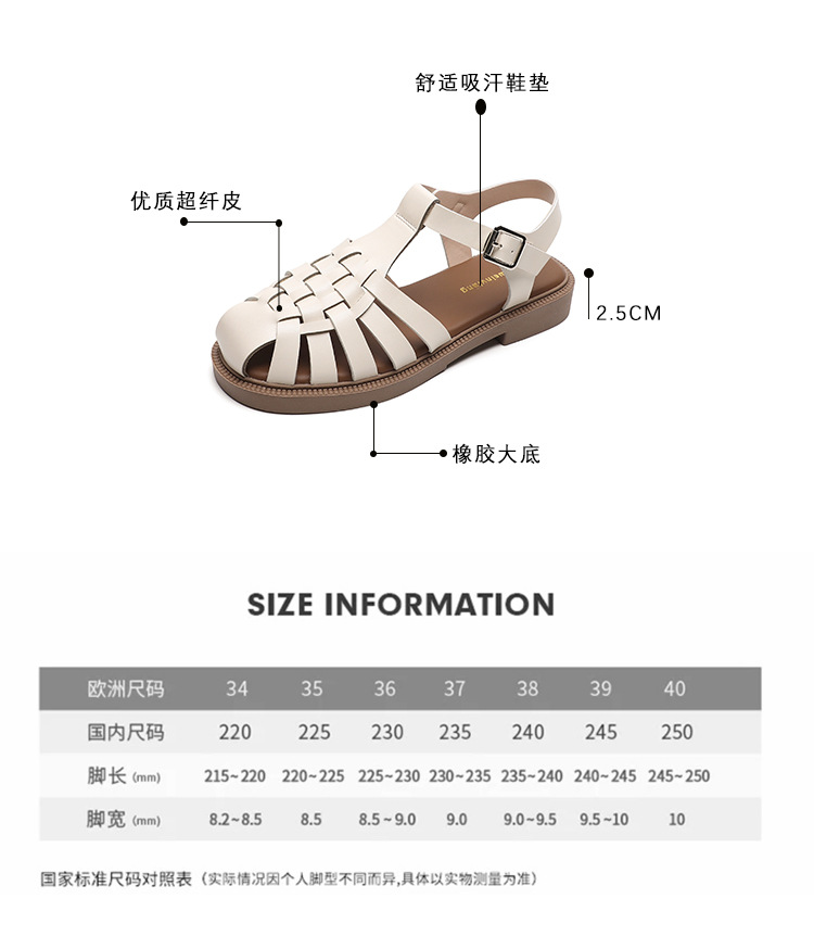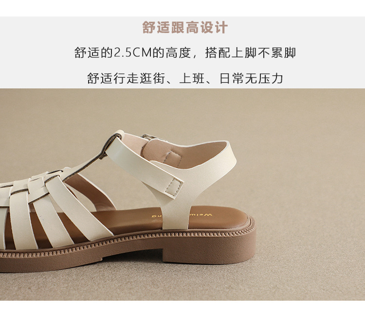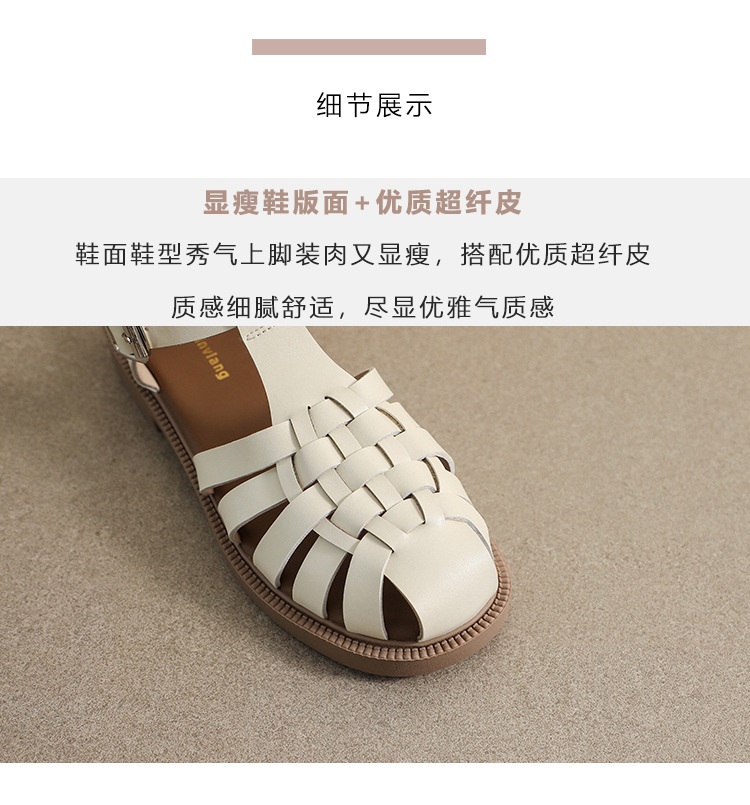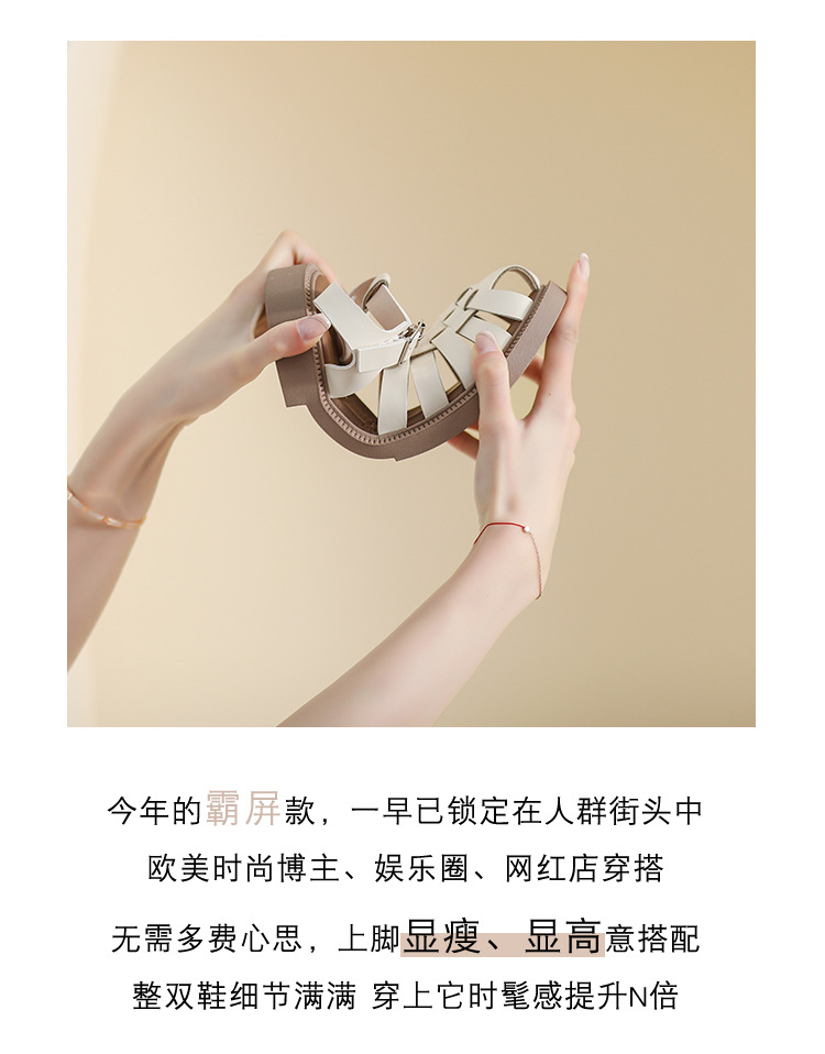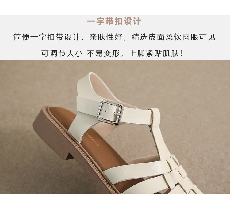 플랫 샌들 2023 새로운 여름 플러스 사이즈 복고풍 짠 로마 신발 두꺼운 바닥 발가락 빈 샌들 여성의 부드러운 바닥