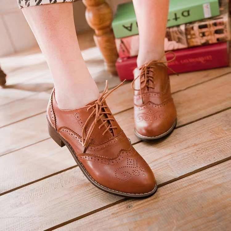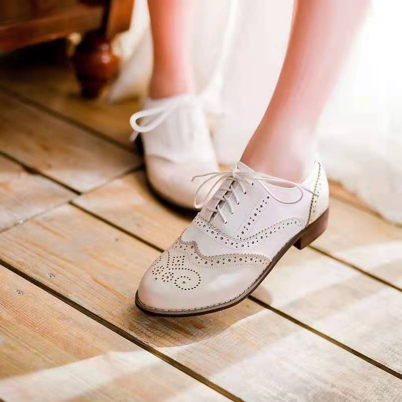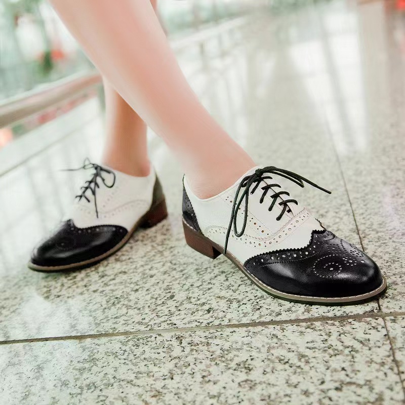 여름 2021 컬러 매칭 스퀘어 힐 재고 로우 컷 화이트 한국 스타일 조각 매일 라운드 발가락 브록 여성 싱글 레이어 신발스토어 가기