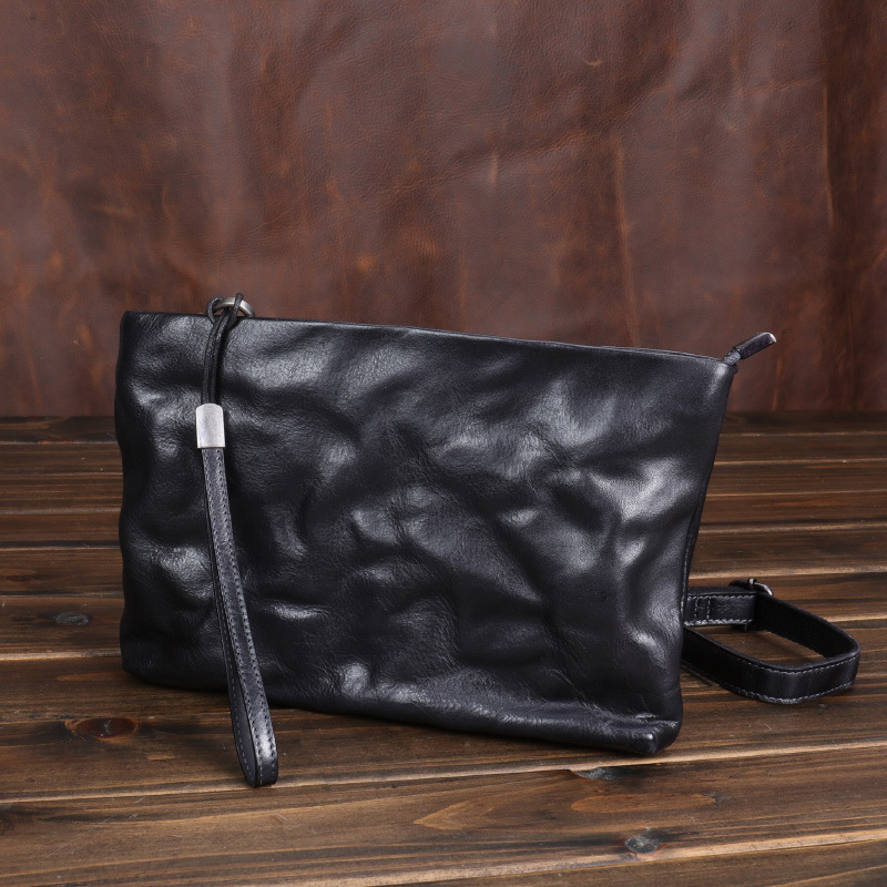 플리츠 야채 무두질 가죽 클러치 백 남성용 대용량 클러치 백 정품 가죽 소가죽 빈티지 유행 여성 숄더 크로스 바디 백