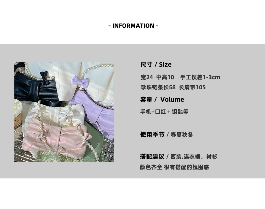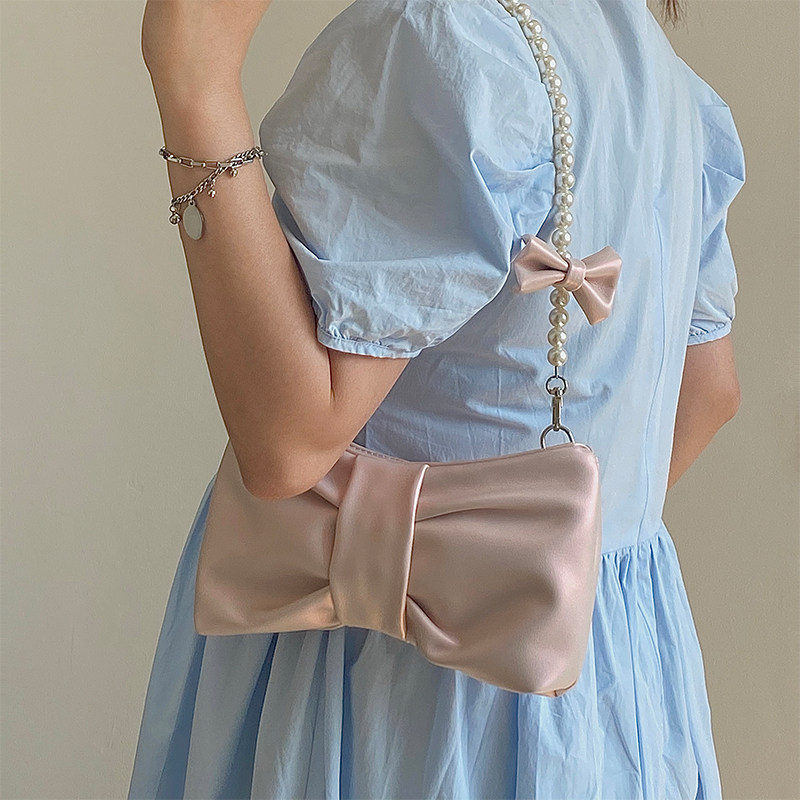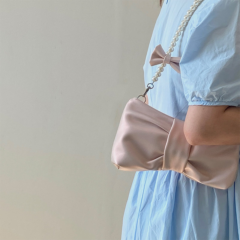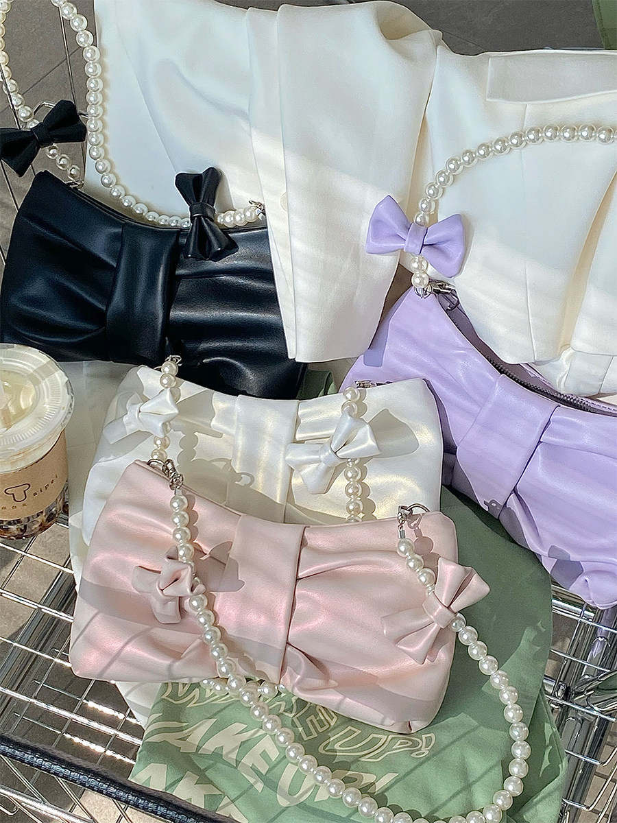 소녀 진주 리본 겨드랑이 가방 2025 신상품 소녀풍 요정 가방 한국 스타일 숄더백 핸드백 크로스백스토어 가기