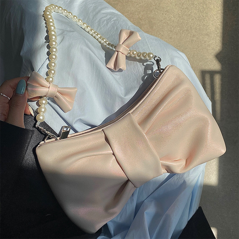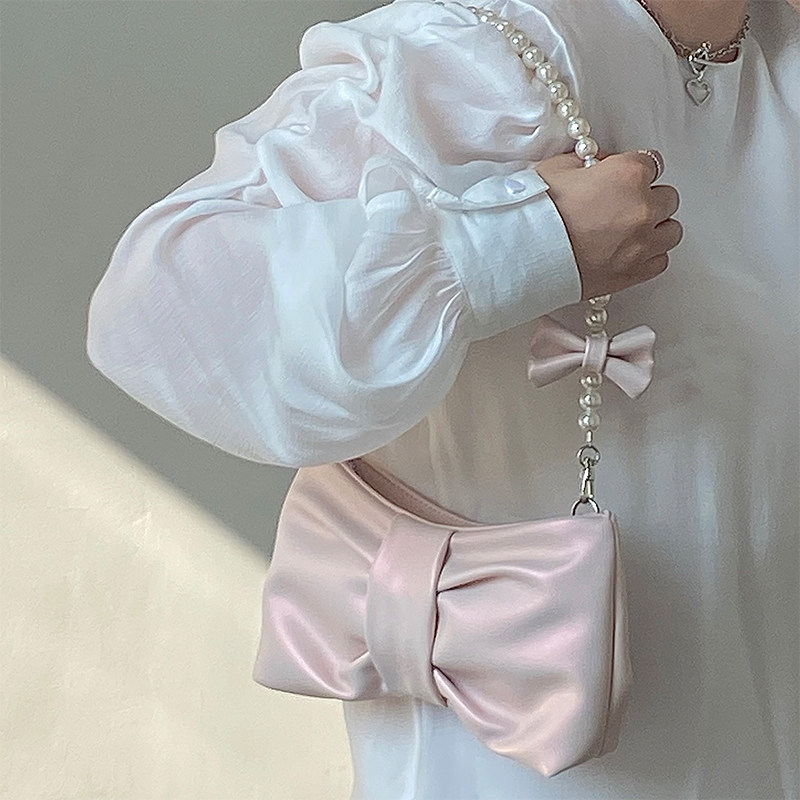 소녀 진주 리본 겨드랑이 가방 2025 신상품 소녀풍 요정 가방 한국 스타일 숄더백 핸드백 크로스백