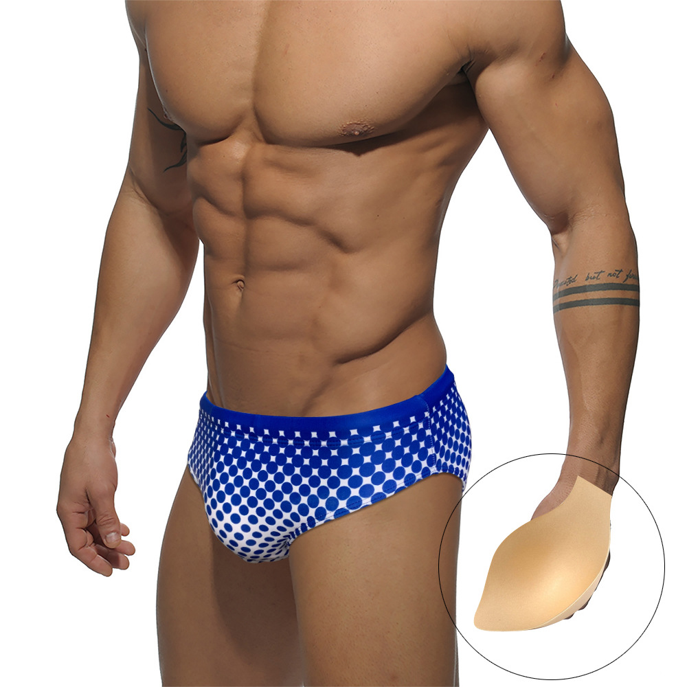 JESSBORN 삼각형 남자 수영 트렁크 컵 당황 방지 훈련 대회 전문 수영 트렁크 웨이브 도트 패션 수영복