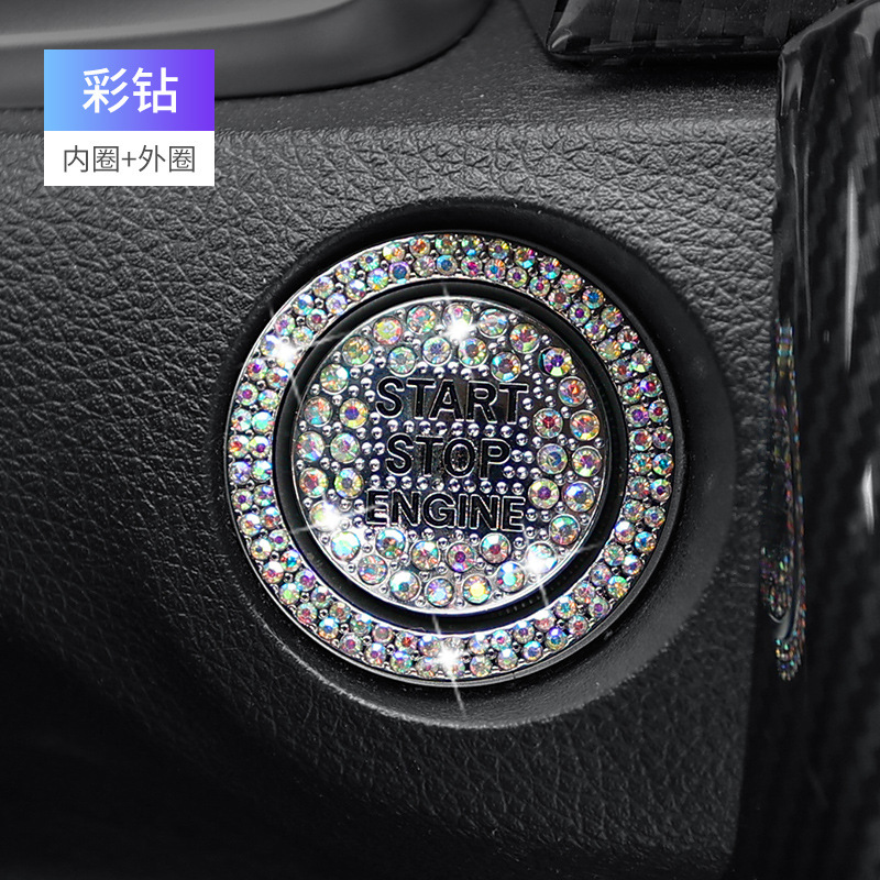 자동차 원 버튼 시작 장식 링 스위치 버튼 보호 커버 인테리어 버튼 스티커 크리스탈 다이아몬드 범용 제품