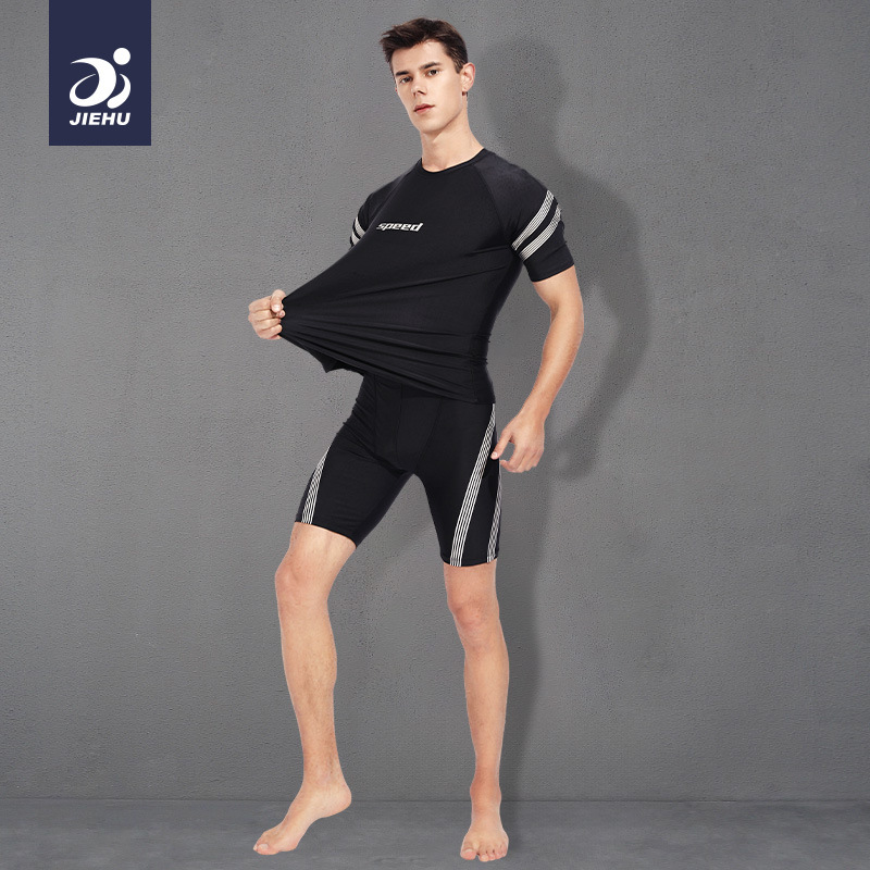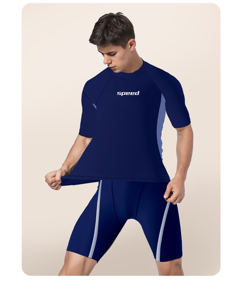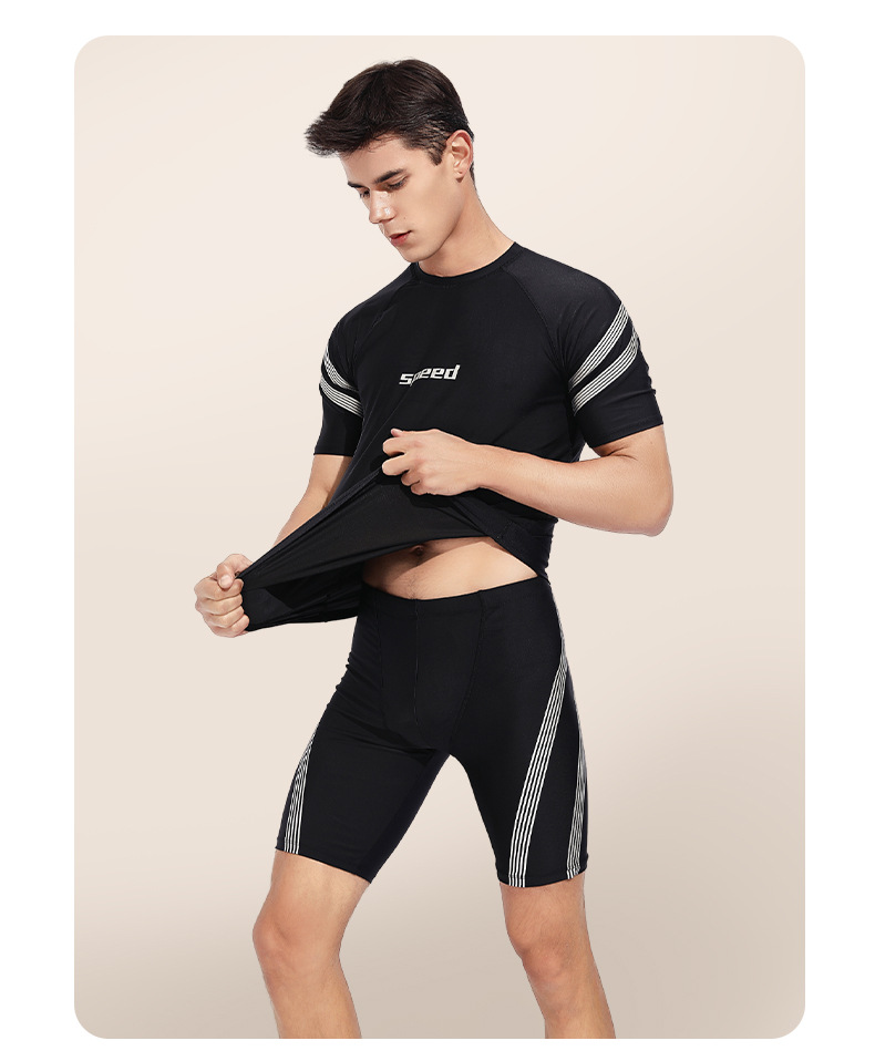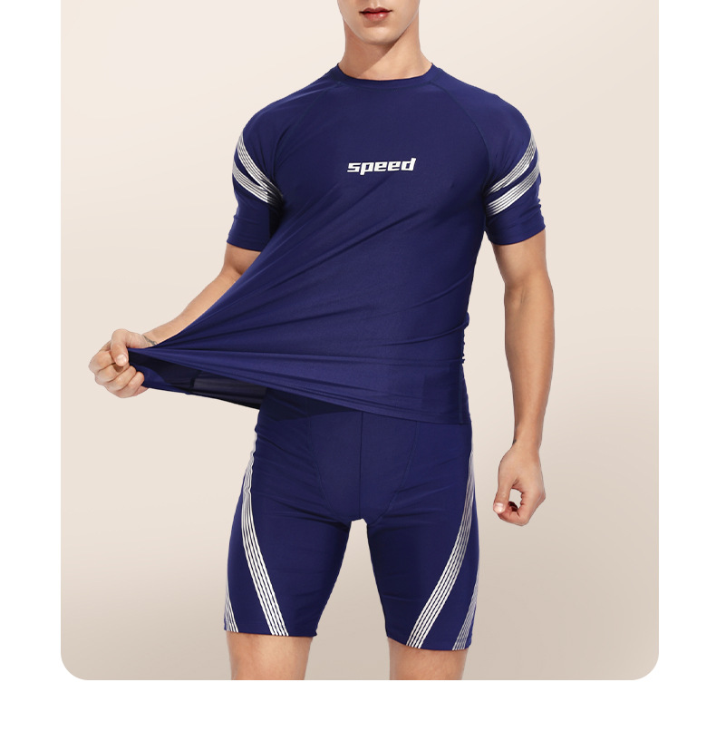 2024 새로운 수영복 남자 수영 트렁크 남자 수영복 세트 분할 훈련 수영 트렁크 5 점 수영 트렁크 비치 바지