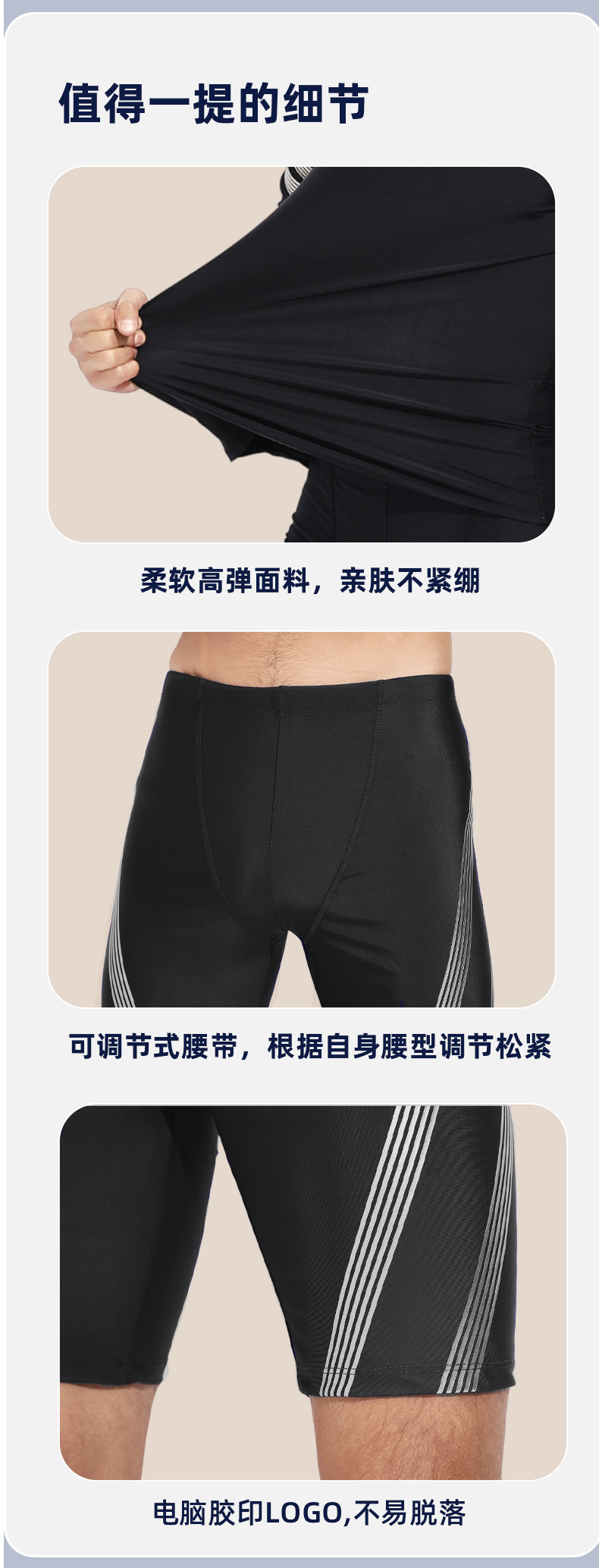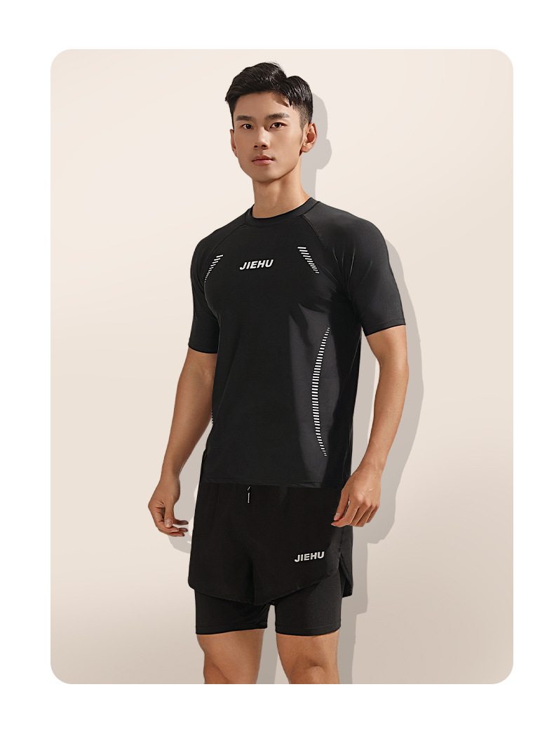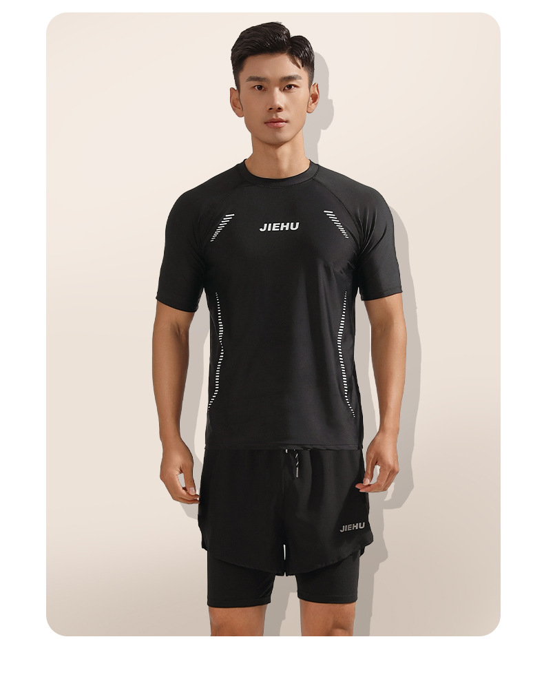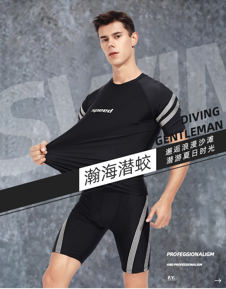 2024 새로운 수영복 남자 수영 트렁크 남자 수영복 세트 분할 훈련 수영 트렁크 5 점 수영 트렁크 비치 바지