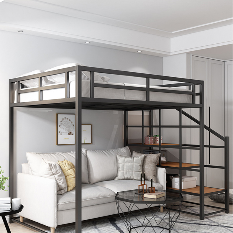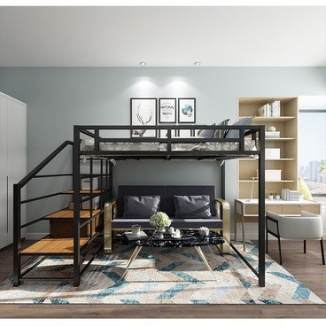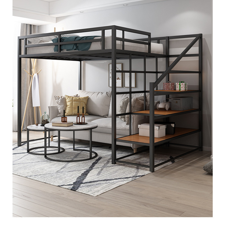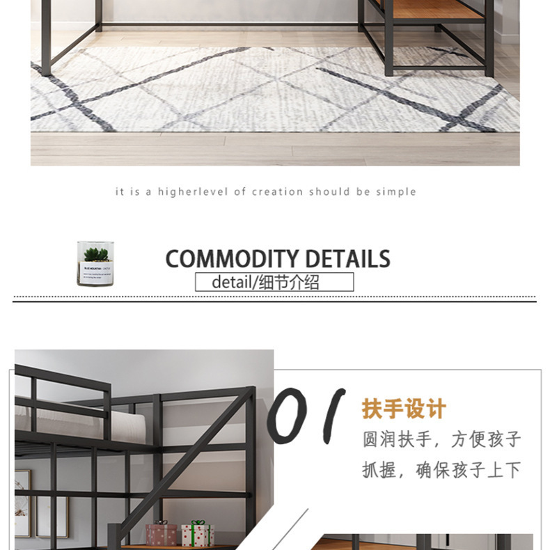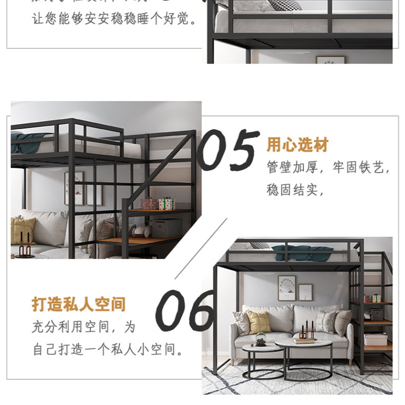현대적인 철제 이층침대, 싱글 아파트용, 상단 침대와 하단 책상이 있는 고급 싱글/더블 침대, 침실용, 견고한 대형 철제 침대