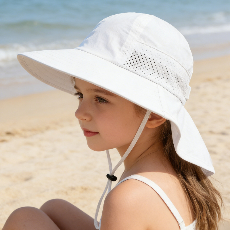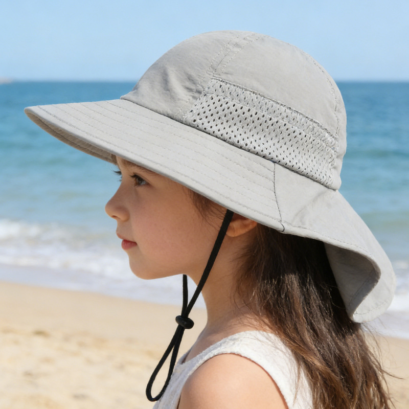 여름 어린이용 자외선 차단 모자, 아기 통기성 비치 모자, 얇은 숄형 선캡, 남녀 어린이용 챙넓은 어부 모자