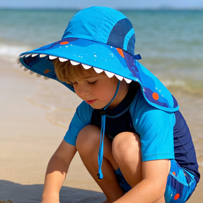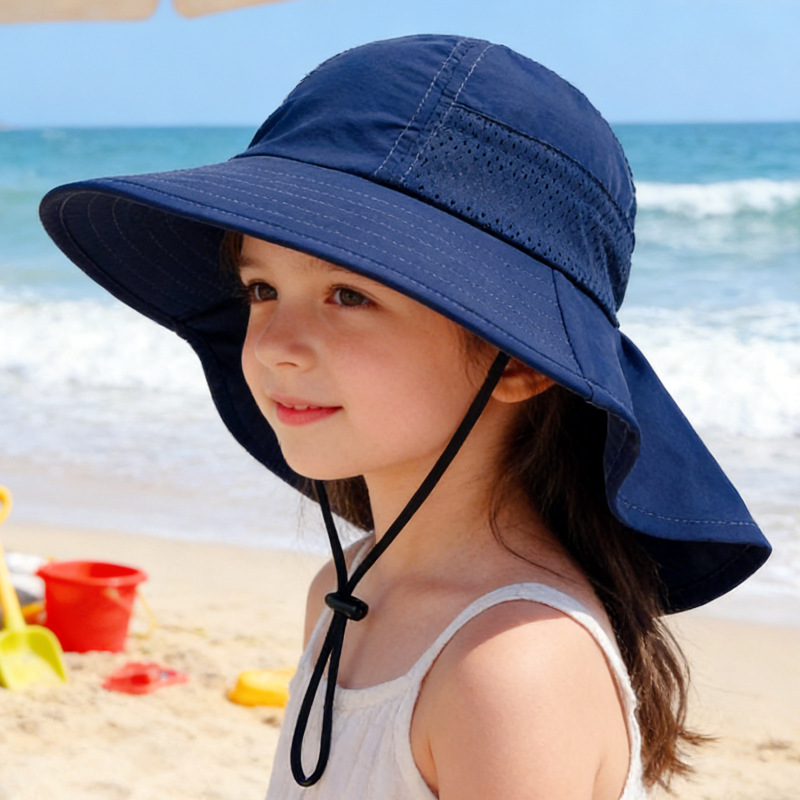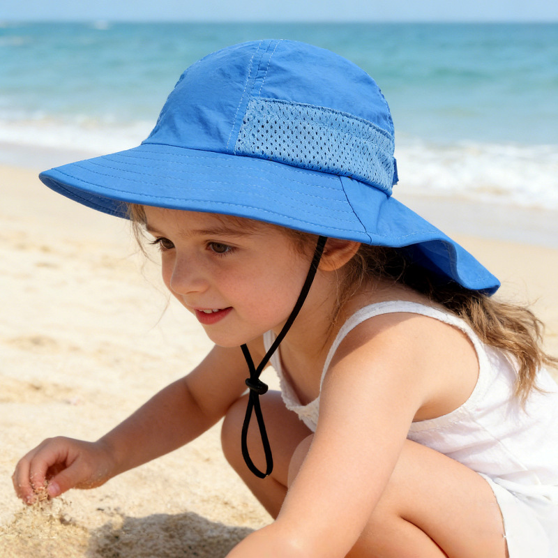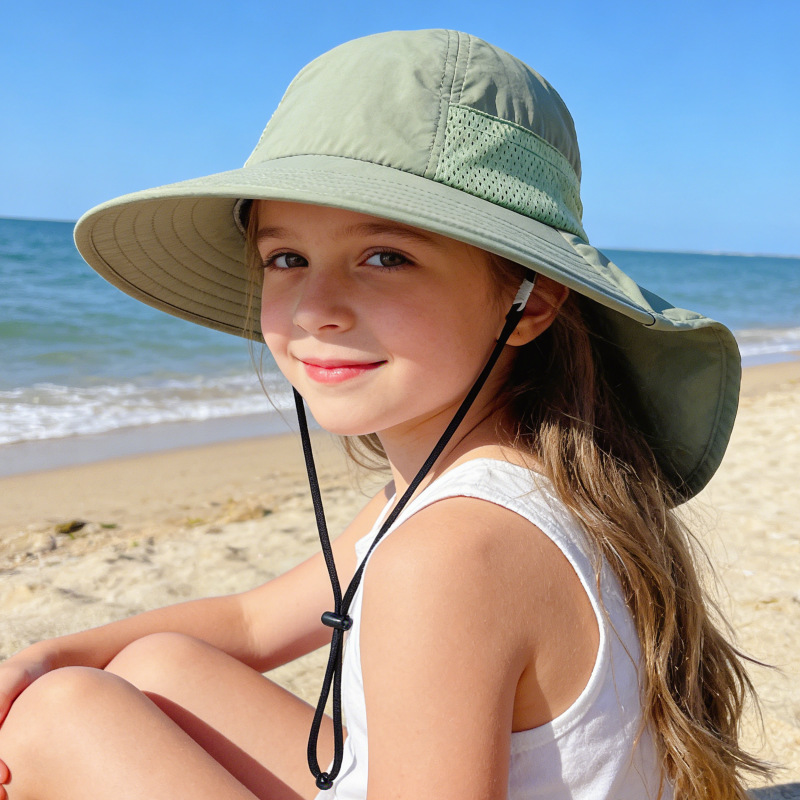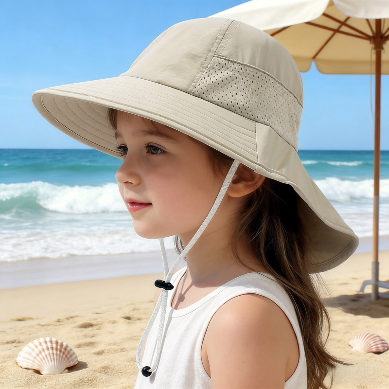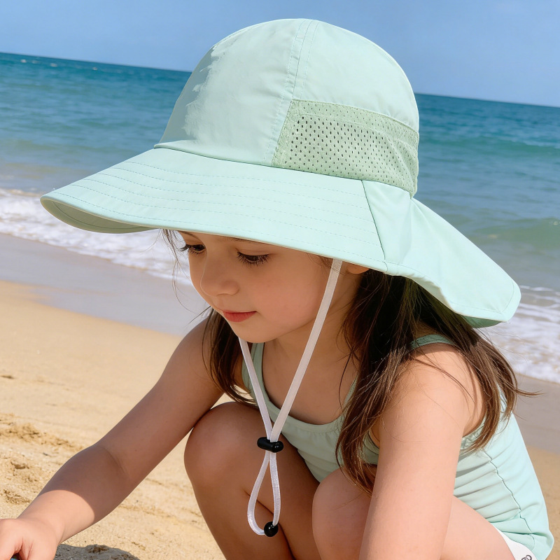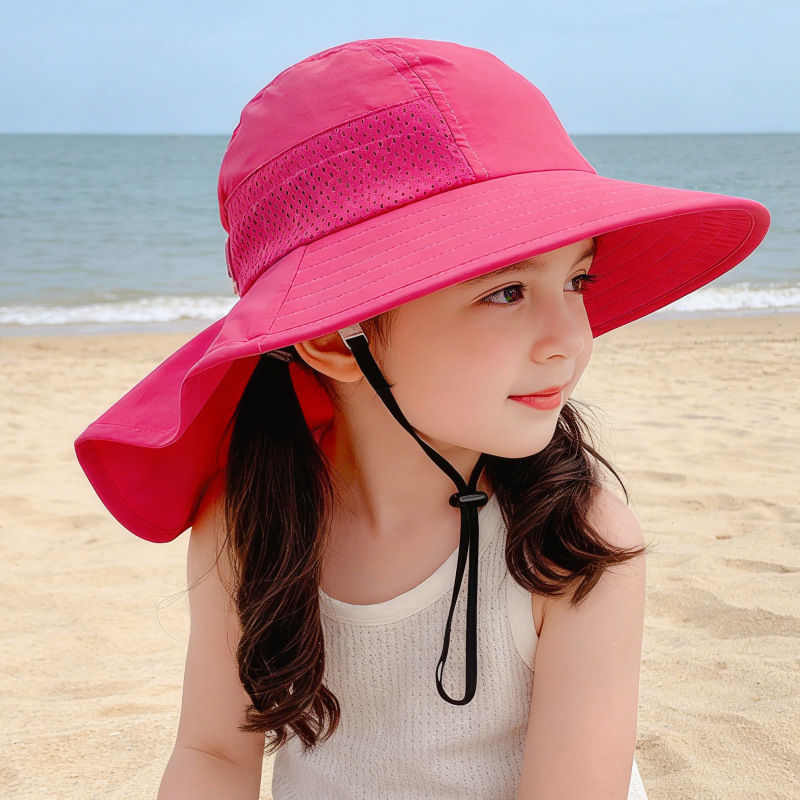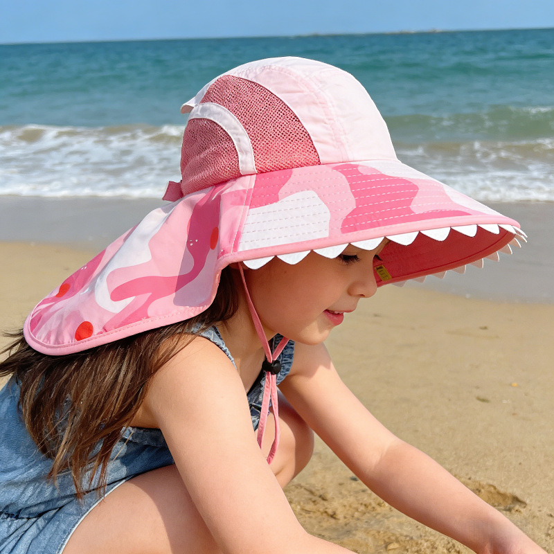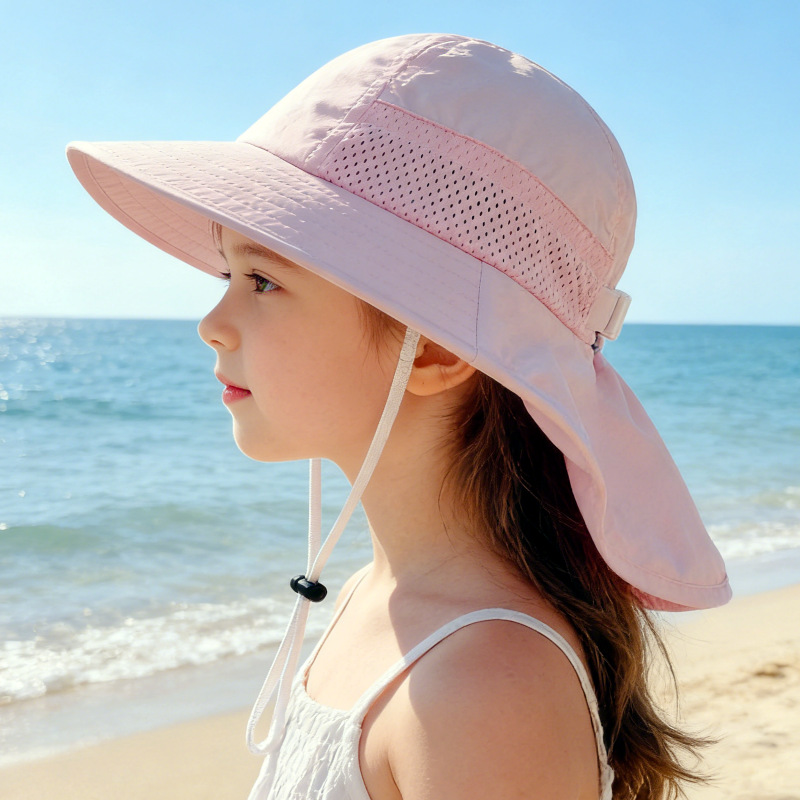 夏季儿童防晒帽宝宝婴儿轻薄透气遮阳帽男童女童大帽檐披肩渔夫帽