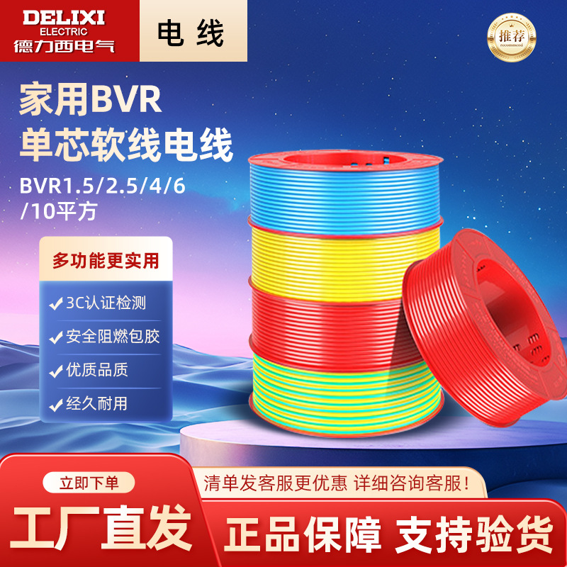 Delixi 단일 코어 멀티 스트랜드 플렉시블 와이어 BVR1.5/2.5/4/6/10 평방 가정용 조명 라인 GB 순수 구리
