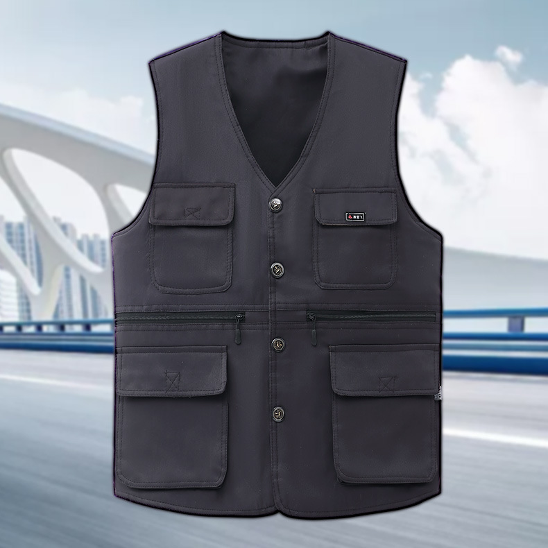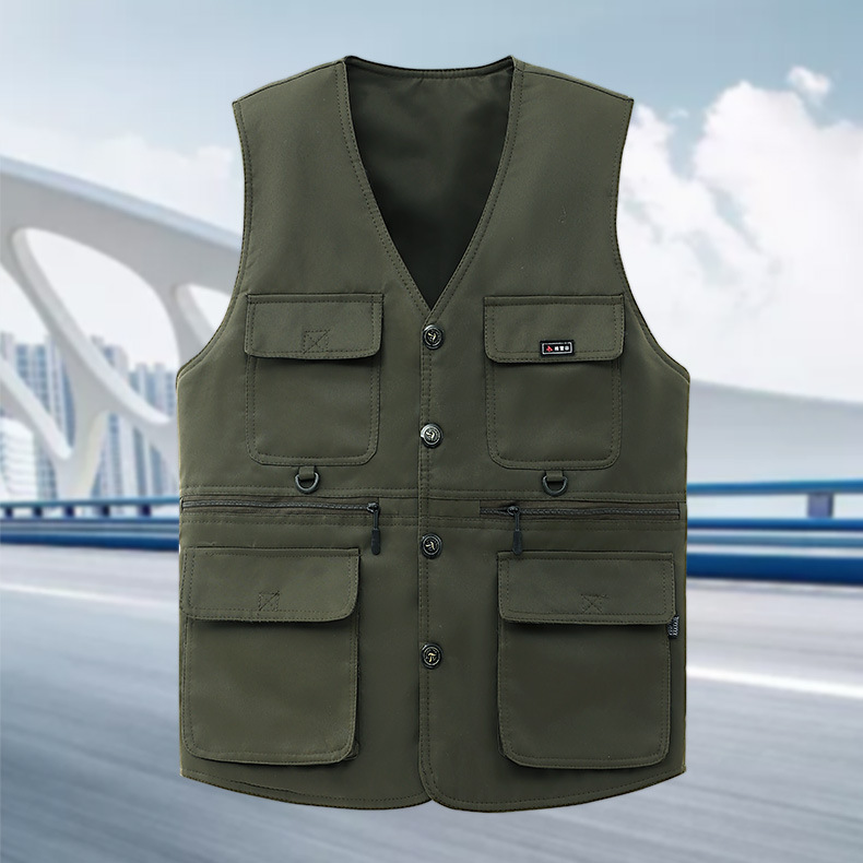 전자상거래 인기 신상품 8포켓 야외 봄, 가을 캐주얼 조끼 중년 남성 아빠 조끼 다기능스토어 가기