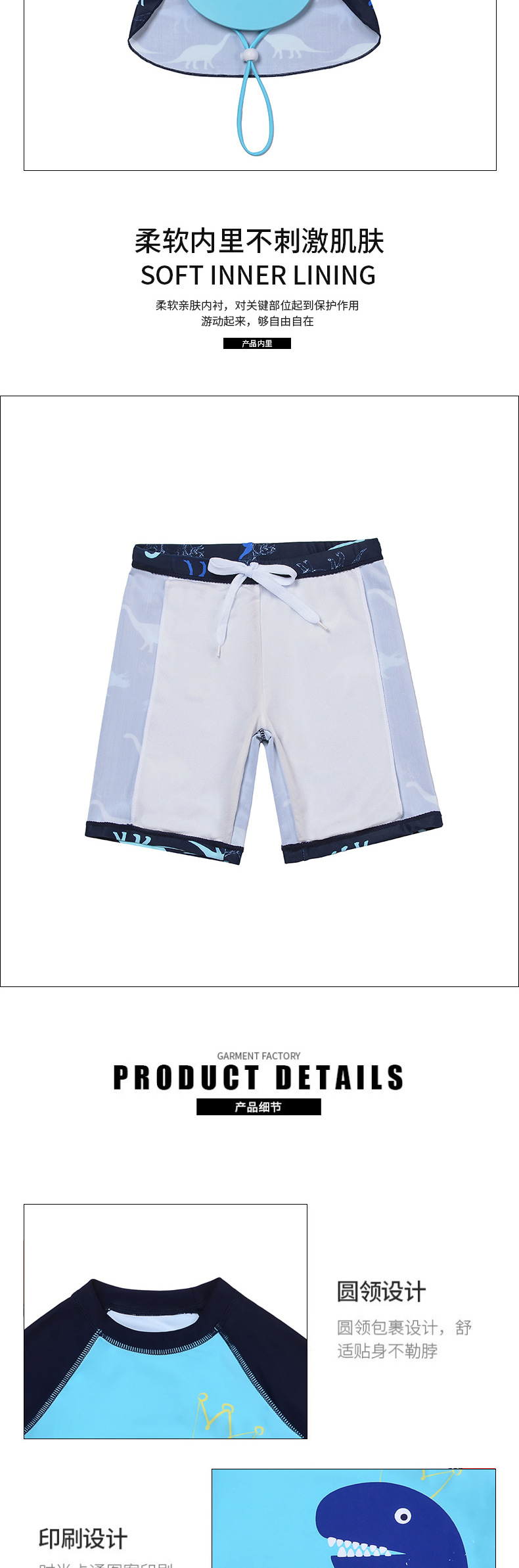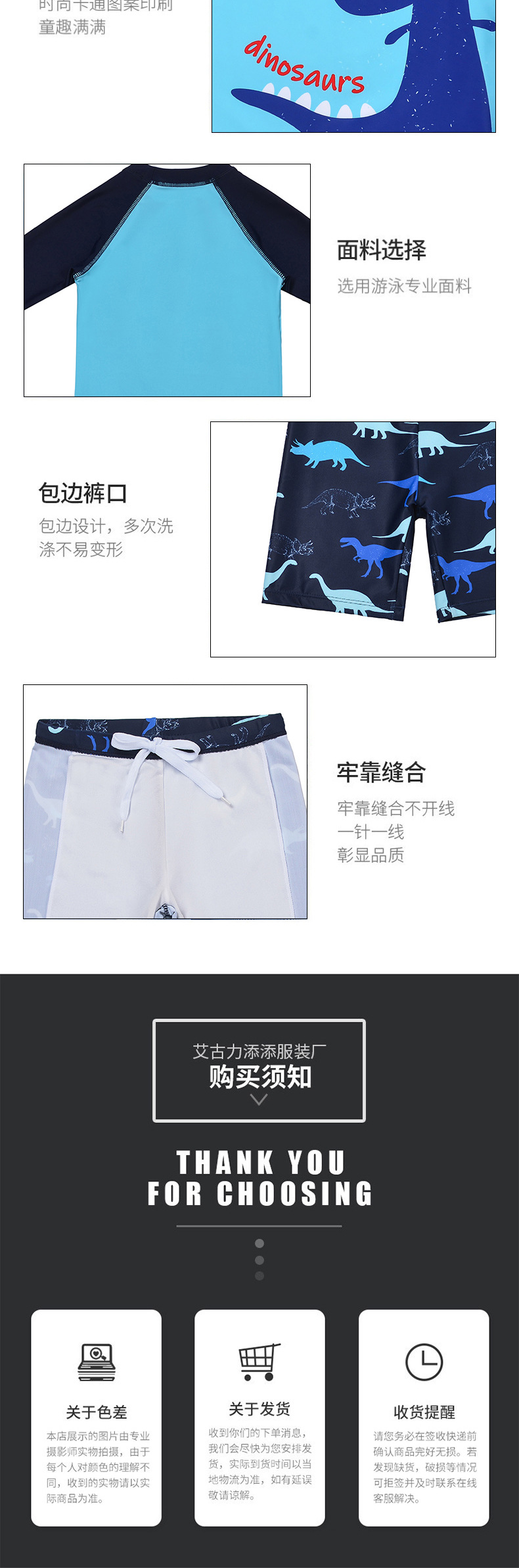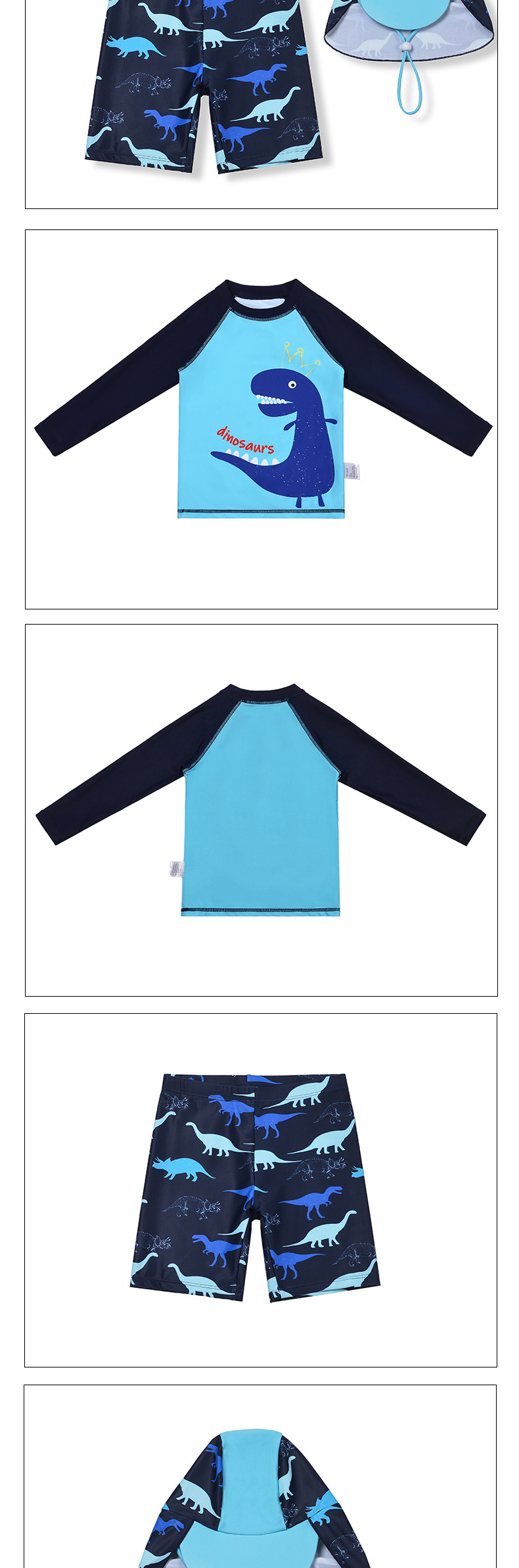 어린이 수영복 세트 남아용 분리형 한국 만화 공룡 빠른 건조 중대형 어린이 남아용 수영복 3피스 세트 수영 모자 포함