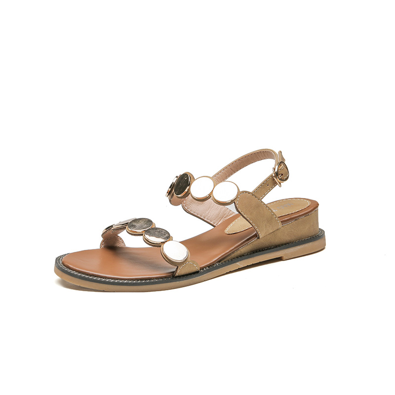 여름 페어리 스타일 버클 스트랩 로마 샌들 오픈 토 3cm 웨지 샌들 부드러운 버클 로우 힐 샌들 여성스토어 가기