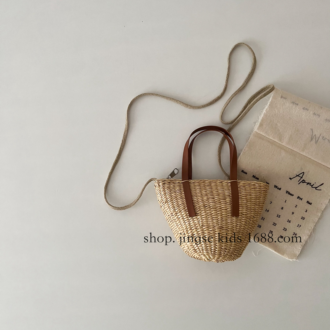 모리 스타일 아기의 손으로 짠 숄더백 소년과 소녀 여름 여행 크로스 바디 밀짚 짠 가방 개인 핸드백스토어 가기