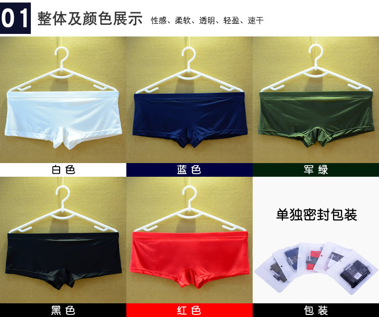 남자 속옷 복서 여름 아이스 실크 반투명 섹시한 청소년 높은 탄성 낮은 허리 통기성 4 코너 속옷 남성용스토어 가기